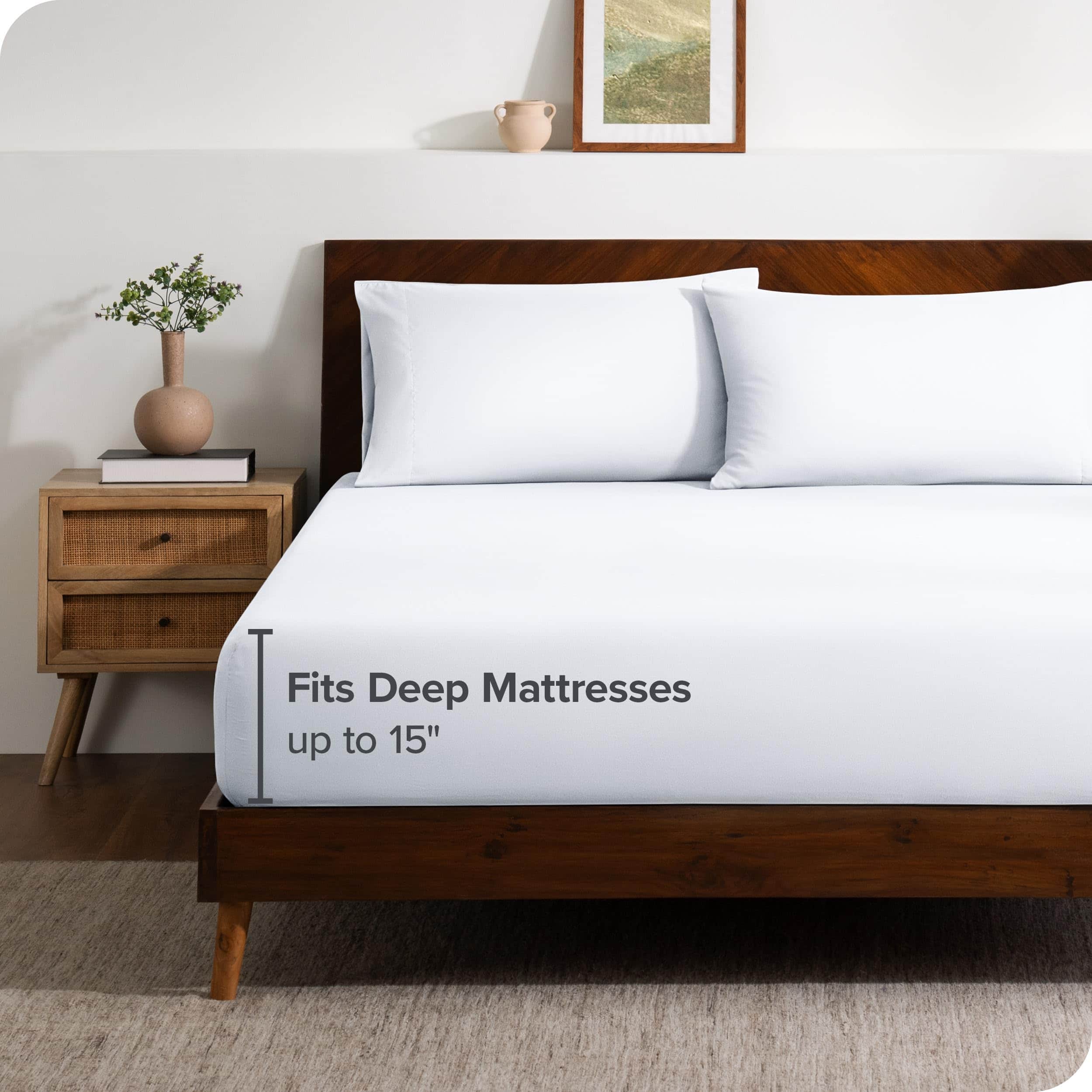 Juego de Sábana Ajustable + Fundas de Almohada -Blanco