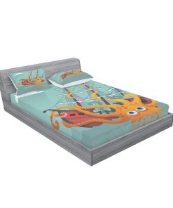Juego de Sábana Ajustable y Funda de -Naranja Turquesa