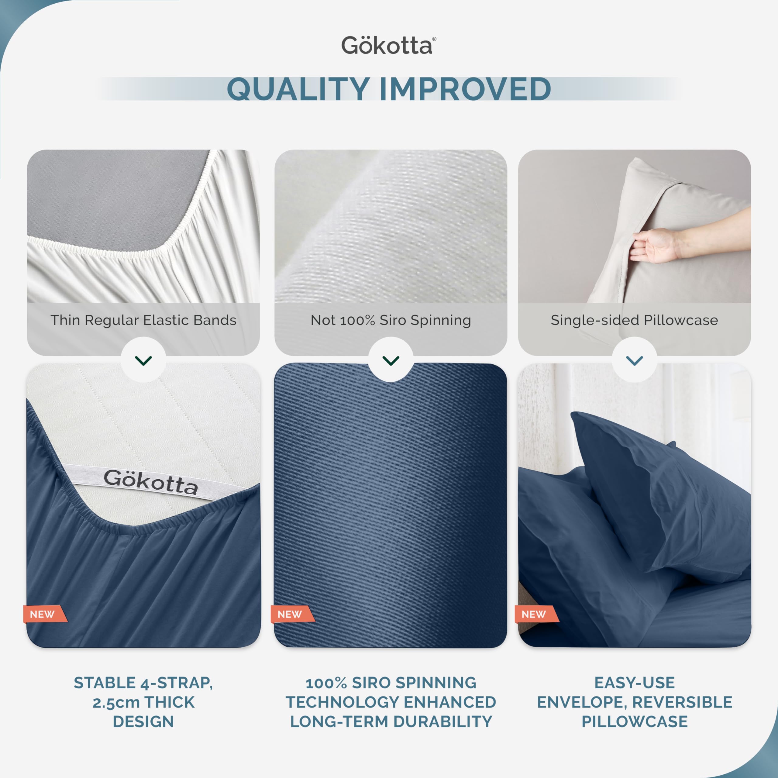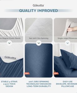 Juego de Sábana Ajustable y Fundas de Almohada de Bambú Rayón GOKOTTA, Sábana Ajustable Súper Suave y Fresca con 4 Correas Elásticas en las Esquinas – Sábana Ajustable de Bolsillo de 16″ California King para Colchón