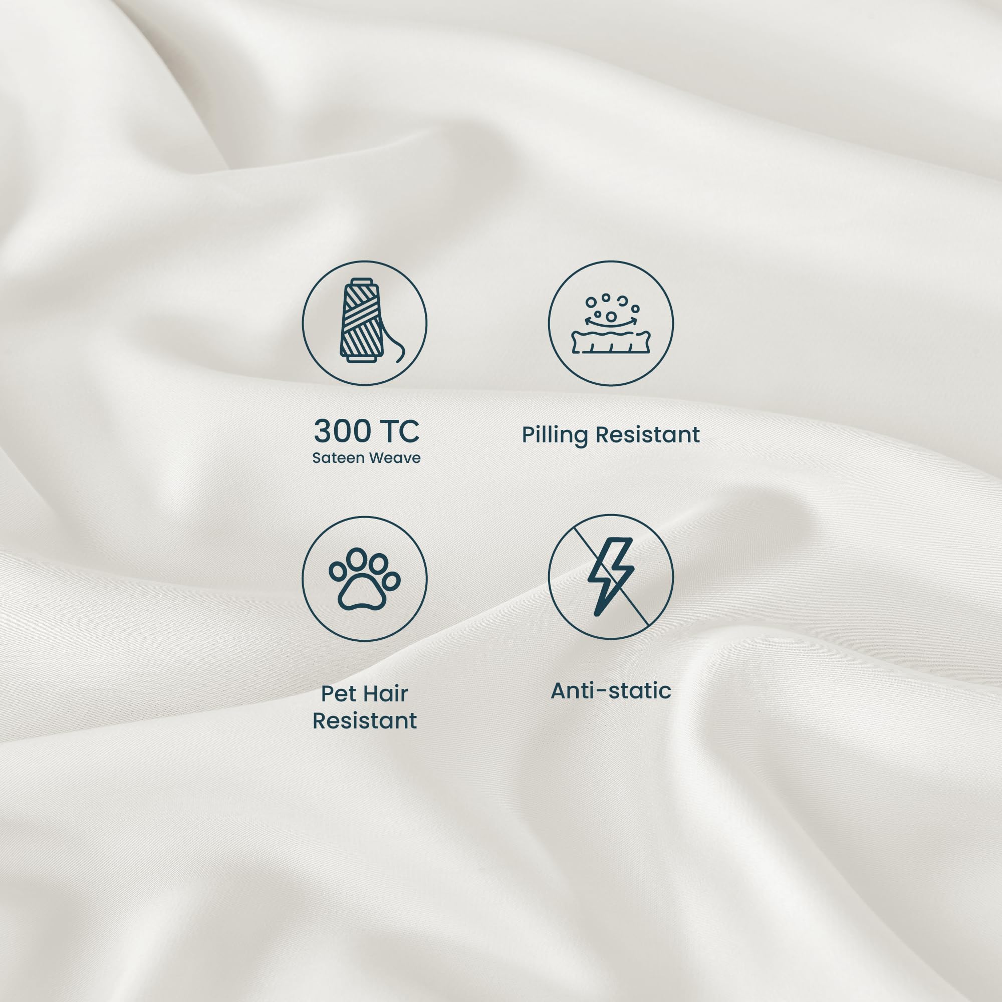 Juego de sábana ajustable y fundas de -Crema Blanca