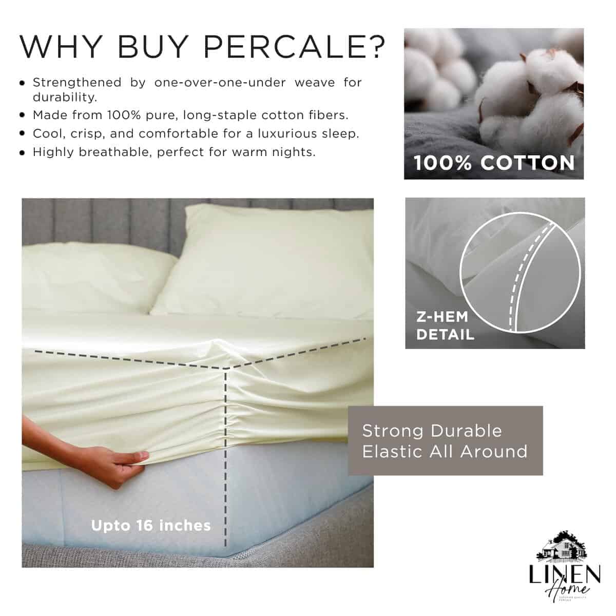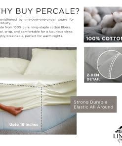 Indúlgese en un sueño reparador con nuestro juego de sábanas bajeras de algodón percal para cama Queen de 3 piezas! Hecho de algodón tejido percal al 100% para una sensación transpirable y refrescante contra su piel. Long-lasting Quality: La construcción tejida de forma ajustada garantiza que estas sábanas se mantengan suaves y lisas durante muchos lavados. La tela de algodón percal de 200 hilos permite un flujo de aire óptimo, manteniéndolo cómodo y sin sudor durante toda la noche. Sumérjase en un sueño apacible envuelto en la suavidad relajante de las sábanas de algodón puro. Diseñado para un ajuste personalizado: Diga adiós a las noches inquietas causadas por sábanas mal ajustadas. Nuestra sábana bajera cuenta con elástico en todo el contorno y bolsillos profundos que pueden acomodar colchones de hasta 16 pulgadas de profundidad, proporcionando un ajuste seguro y ceñido. Disfrute de una cama perfectamente hecha cada mañana, sin tener que luchar más para mantener sus sábanas en su lugar. Nuestro juego de sábanas bajeras tamaño Queen incluye – 1 Sábana Bajera (60″X80″+15″) y 1 Funda de Almohada (20″X30″). Durabilidad inigualable para un uso duradero: Elaborado para resistir la prueba del tiempo, nuestro juego de sábanas esencial de 3 piezas está construido para soportar un uso frecuente sin comprometer la calidad. Las fibras de algodón duraderas resisten el apelotonamiento y la decoloración, garantizando que sus sábanas mantengan su aspecto fresco y limpio lavado tras lavado. Experimente la comodidad duradera del juego que se convertirá en una parte preciada de su dormitorio durante años. Hecho en Green y Certificado OEKO-TEX: Producido en fábricas «Made in Green», nuestro juego de sábanas está elaborado con el medio ambiente en mente. Experimente el lujo de ropa de cama de alta calidad y sepa que su compra apoya prácticas de fabricación responsables. El juego de sábanas bajeras tamaño Queen está certificado OEKO-TEX, libre de productos químicos dañinos, asegurando un ambiente de sueño saludable y seguro. Servicio al cliente y Devoluciones Fáciles: En Linen Home, estamos dedicados a la satisfacción del cliente, ofreciendo una política de devolución sin complicaciones de 30 días sin preguntas. Nuestro equipo garantiza un soporte rápido, proporcionando soluciones e información de pedidos en 24 horas. Perfecto para regalar durante todo el año, ya sea primavera o verano o para refrescar espacios como un nuevo dormitorio, habitación infantil, habitación infantil, habitación de invitados o dormitorio universitario.