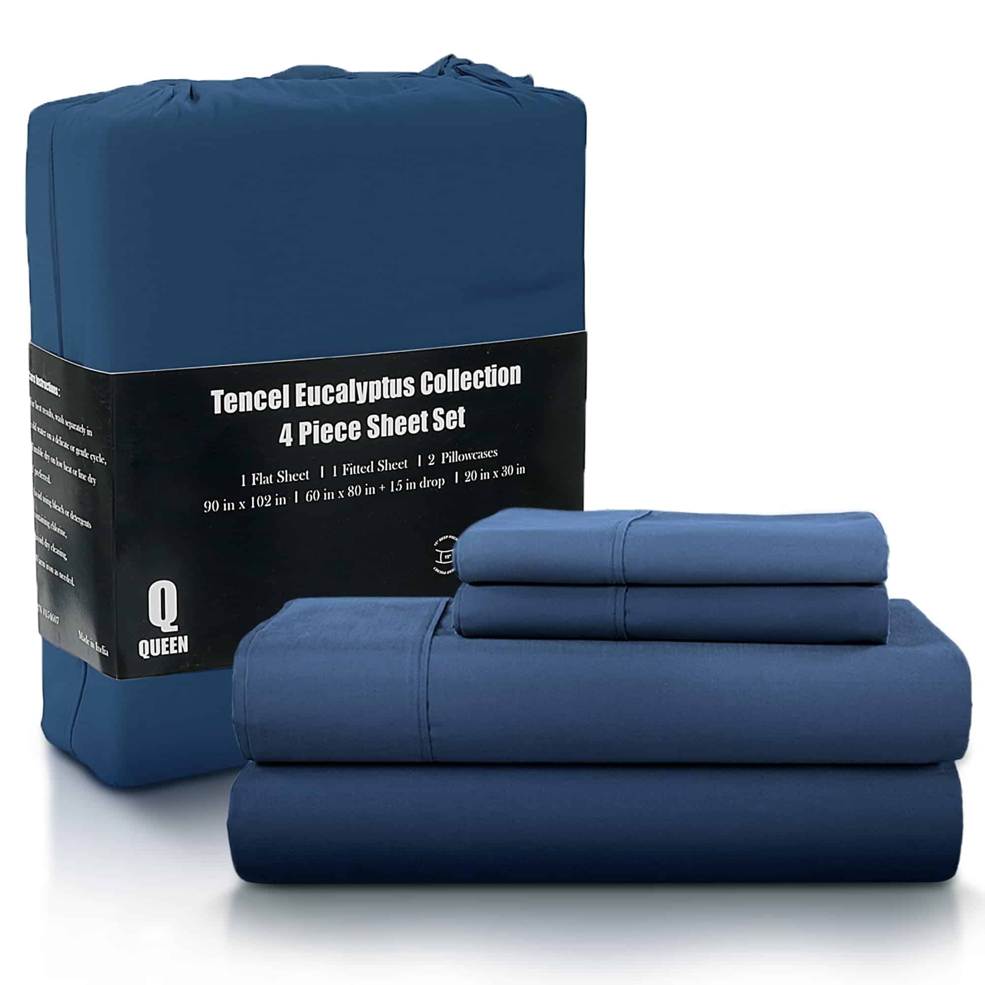 1. Juego completo de sábanas tamaño Queen: Nuestro juego premium de sábanas Queen incluye 1 sábana ajustable para cama Queen (60″ x 80″), 1 sábana plana (90″ x 102″), y un juego de 2 fundas de almohada estándar (20″ x 30″), ofreciendo una solución de ropa de cama completa perfecta para mejorar tu dormitorio. Nuestras sábanas con bolsillo de 15 pulgadas de profundidad están diseñadas para adaptarse a colchones de hasta 17 pulgadas y cuentan con un elástico resistente a roturas para garantizar un ajuste perfecto. 2. Sábanas de Enfriamiento: Nuestras sábanas de tencel cuentan con capacidad de absorción de la humedad que aleja eficientemente el sudor y la humedad en exceso del cuerpo, promoviendo una mejor transpirabilidad y evitando molestias o sensación pegajosa durante el sueño. Además, el juego de sábanas está diseñado con propiedades de enfriamiento especialmente diseñadas para los que duermen calientes. La transpirabilidad inherente de la tela y sus capacidades de absorción de la humedad trabajan armónicamente para crear un ambiente de sueño fresco y cómodo. 3. Lujo durante Todo el Año: Las fibras de tencel lyocell en nuestras sábanas de enfriamiento poseen propiedades de regulación térmica, lo que les permite adaptarse a las fluctuaciones de temperatura del cuerpo. Estas sábanas pueden ayudar a enfriar el cuerpo durante períodos cálidos facilitando la salida de calor y humedad. Por otro lado, proporcionan calor y aislamiento en entornos más fríos. Esta regulación dinámica de la temperatura promueve un ambiente de sueño óptimo durante toda la noche, haciendo que nuestras sábanas sean adecuadas para su uso durante todo el año. 4. Descubre nuestras sábanas de Tencel, más suaves que las sábanas de algodón, fundas de almohada para dormir, y una amplia selección de sábanas tamaño cama California King, cama King y cama Queen, todo en un solo lugar! Juego de sábanas Tencel de alta calidad. Juego de 4 piezas en blanco. 5. Comodidad Fresca para los que Duermen Calientes: Diseñadas con la transpirabilidad de la naturaleza, estas sábanas son un refugio para los que duermen calientes. Nuestras sábanas de Queen enfriamiento alejan la humedad y permiten que el aire circule, manteniéndote fresco, seco y cómodo toda la noche.
