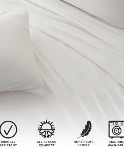 1. Extra Suave y Acogedor: Estas sábanas de jersey se sienten como tu camiseta favorita. La tela de mezcla de algodón es cálida, suave, flexible y transpirable para un máximo confort al dormir.