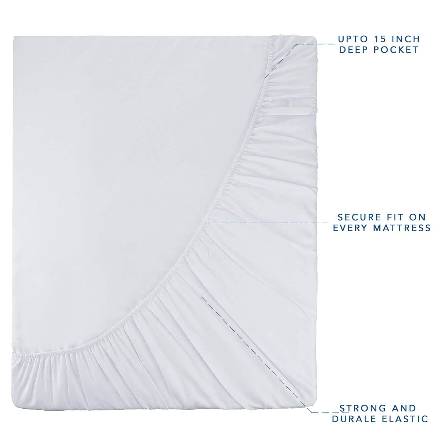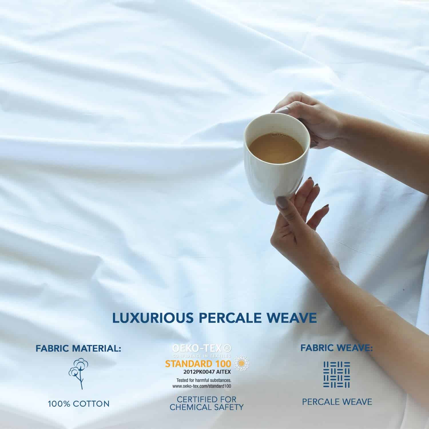 3. SIENTE LA COMODIDAD FRESCA: Tejido densamente en rico tejido Percale, nuestras sábanas te mantienen fresco, cómodo y transpirable en todas las estaciones. Estas sábanas de Percale premium vienen con un acabado anti-pilling. Nuestras sábanas son suaves y crujientes y crujen cuando te mueves en la cama.