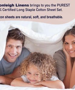 Contenido del paquete AVONLEIGH: Avonleigh Linens te trae el Juego de Sábanas de Algodón 100% Certificado de Fibra Larga puro. Este juego de color blanco de tamaño completo incluye: 1 Sábana Plana (81″x96″), 1 Sábana Ajustable (54″ x 75″ + 15″) con bolsillos extra profundos para adaptarse a colchones de hasta 17″, 1 Funda de Almohada (20″x30″). Este producto se envía en un paquete de regalo respetuoso con el medio ambiente.