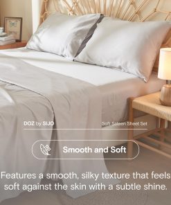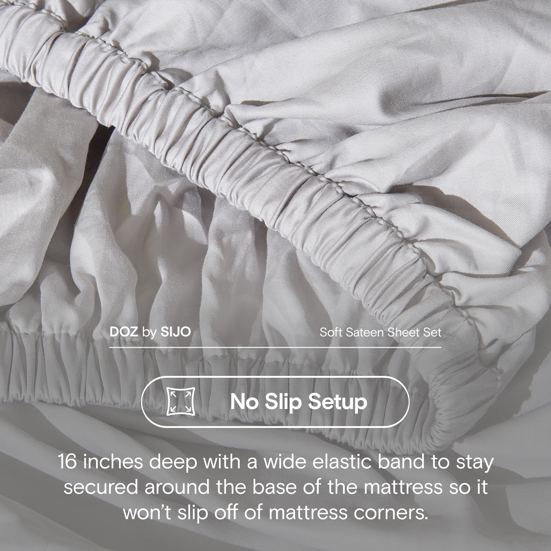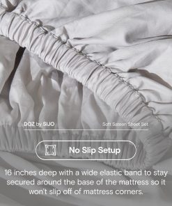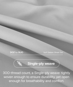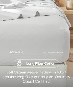 El juego de sábanas de algodón de satén de Doz por SIJO está certificado por Oeko Tex 100 Clase 1 con los requisitos más estrictos para prendas de bebé. Nuestras sábanas de algodón están libres de toxinas en cada paso, puedes dormir tranquilo sabiendo que el 100% de nuestras sábanas están libres de productos químicos, pesticidas y OMG. Utilizamos solo telas de algodón de fibra larga auténtica de un solo hilo. El recuento de hilos de 300 es el perfecto para sábanas de satén, lo suficientemente tejidas para garantizar una durabilidad premium y asegurar que las sábanas sean extremadamente transpirables y frescas al tacto para dar un buen y fresco sueño. El bolsillo de 16 pulgadas de profundidad de las sábanas ajustadas permite que se ajusten a la mayoría de los colchones del mercado. La tela de satén proporciona a las sábanas una sensación lujosamente suave y el algodón tiene propiedades transpirables que te mantendrán fresco incluso en las noches más calurosas. Una de las ventajas de las sábanas de satén, además de la suave sensación, es que son menos abrasivas, lo que las convierte en una gran opción para personas con piel fácilmente irritada.