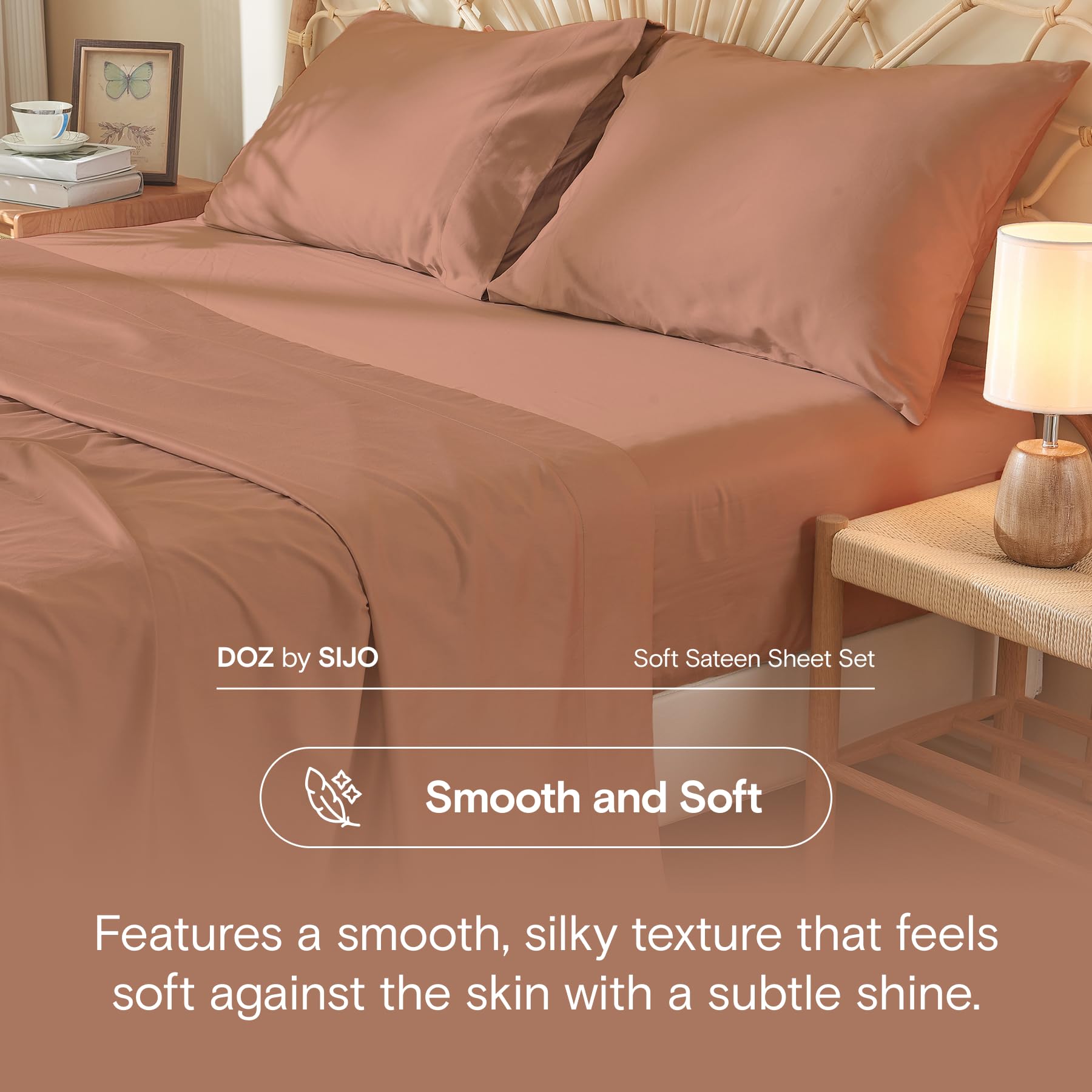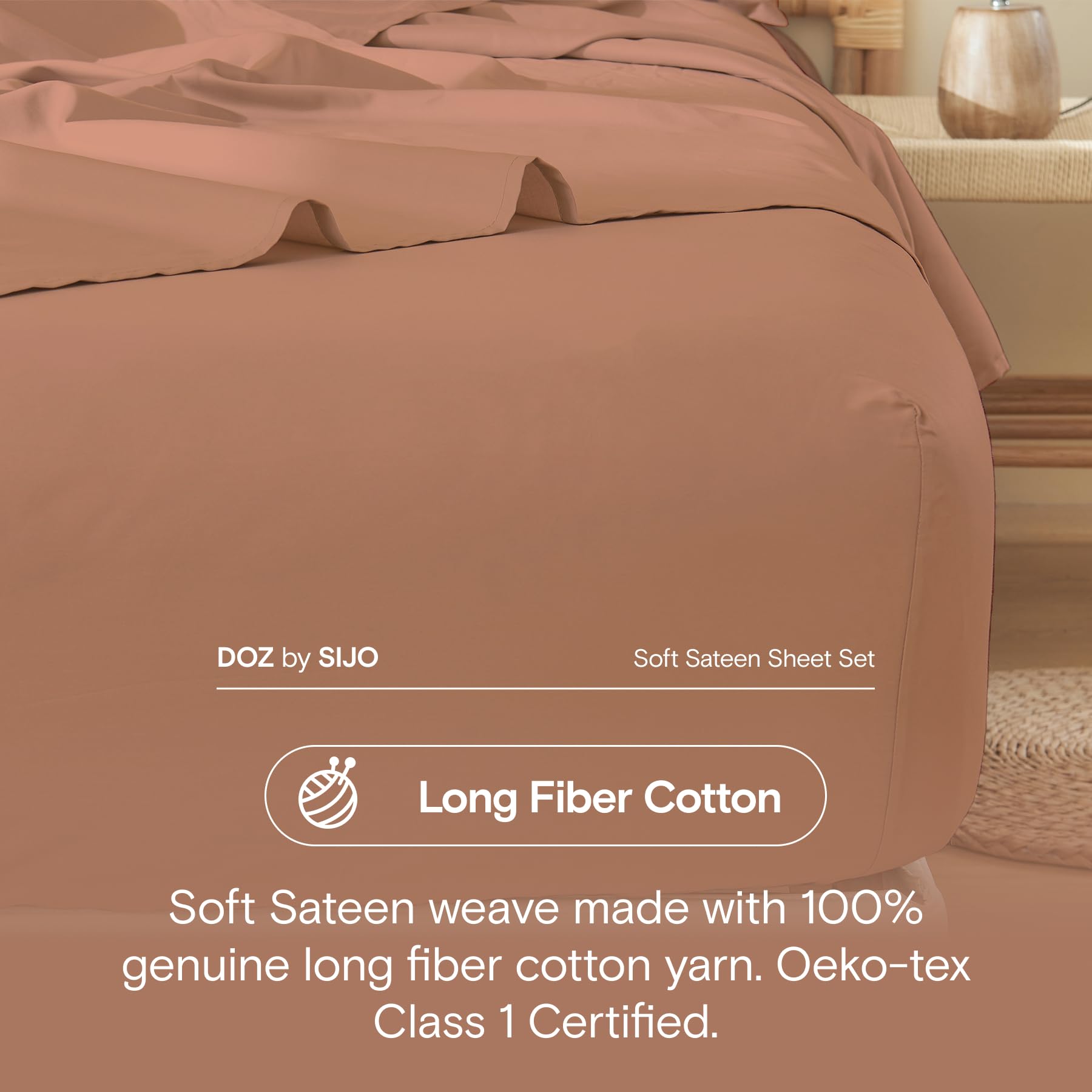 Juego de sábanas 100% algodón de fibra larga -Arcilla