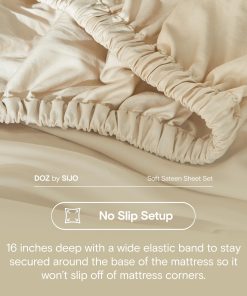 DOZ by SIJO COTTON SHEET SET: SIJO es una marca de ropa de cama experta en materiales innovadores. Nuestra misión y productos nos han valido numerosos premios y reconocimiento en la industria. Ahora, llevamos esa misma experiencia y pasión por los productos para dormir DOZ by SIJO. Descansa sabiendo que DOZ, respaldado por la marca SIJO, contará con artículos de alta calidad, bien elaborados y a buen precio para ayudarte a lograr un mejor sueño noche tras noche. Las sábanas de algodón con tejido satén DOZ de SIJO están certificadas Oeko Tex 100 Clase 1 con los requisitos más estrictos para ropa de bebé. Nuestras sábanas de algodón están libres de toxinas en cada paso, puedes dormir tranquilo sabiendo que el 100% de nuestras sábanas están libres de productos químicos nocivos, pesticidas y transgénicos. Utilizamos solo tejidos de algodón de una sola capa que son 100% auténticas fibras largas de algodón. El tejido de hilo de una sola capa se produce utilizando una sola fibra de algodón de larga fibra para crear un hilo. 300 hilos es el paso perfecto para sábanas de satén, está tejido lo suficientemente apretado para garantizar una durabilidad premium mientras asegura que las sábanas sean extremadamente transpirables y frescas al tacto para proporcionar un buen y fresco sueño. El bolsillo profundo de 16 pulgadas permite que las sábanas ajustadas se adapten a la mayoría de los colchones del mercado. No todos usan una sábana superior, por lo que ofrecemos dos opciones de juegos con y sin sábana superior. No es necesario pagar por algo que quizás no uses. El tejido de satén le da a las sábanas una sensación suave y sedosa de lujo, y el algodón tiene propiedades transpirables que te mantendrán fresco incluso en noches más cálidas. Uno de los beneficios de las sábanas sedosas, además de la sensación suave, es que son menos abrasivas. Esto las convierte en una excelente opción para personas con piel sensible.