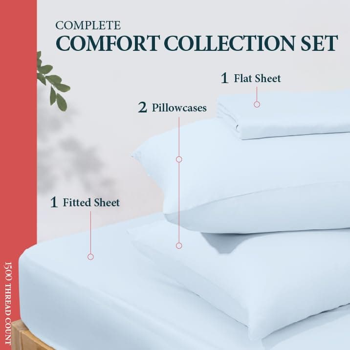 Juego de sábanas 100% algodón egipcio -Azul Claro