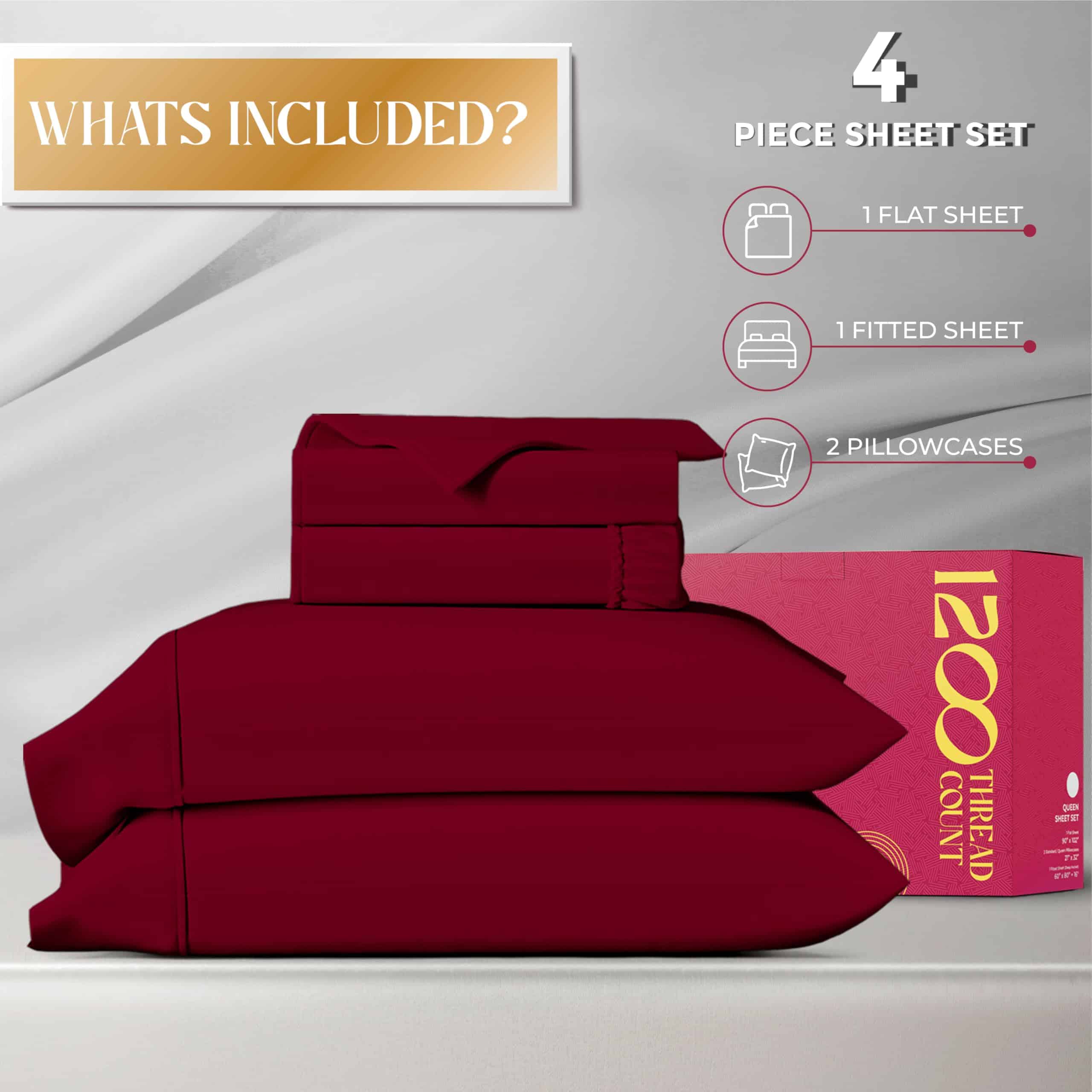 Juego de sábanas 100% algodón egipcio -Borgoña