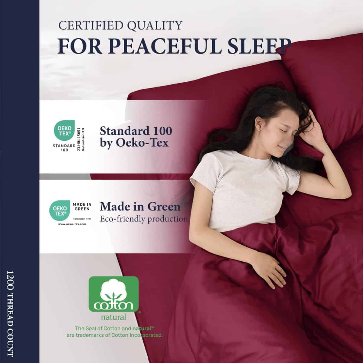 3. Perfectamente fresco y transpirable para todas las estaciones: Hechas de algodón egipcio, nuestro juego de sábanas de algodón egipcio tamaño cal king es refrescante y ultra transpirable durante todo el año para mantenerte cómodo mientras duermes. Nuestras lujosas sábanas cal king de algodón egipcio absorben la humedad y maximizan el flujo de aire por la noche, lo que las hace perfectas para los que duermen calientes. Además, estas sábanas de algodón egipcio tamaño king están validadas por OEKO-TEX para ser libres de sustancias nocivas, lo que las hace ideales para bebés y adultos por igual.