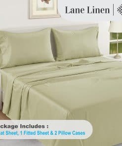 3. Sábanas transpirables y frescas: Permanece cómodamente fresco durante toda la noche con este set de sábanas tamaño California King en algodón egipcio en verde salvia. La excelente transpirabilidad del algodón egipcio del juego de sábanas cal king en verde promueve un mejor flujo de aire para un sueño reparador. Estas sábanas de cama de Lane Linen tamaño California King cuentan con un diseño elegante y atemporal que complementa sin esfuerzo cualquier decoración de dormitorio y añade un toque de sofisticación a tu espacio para dormir.