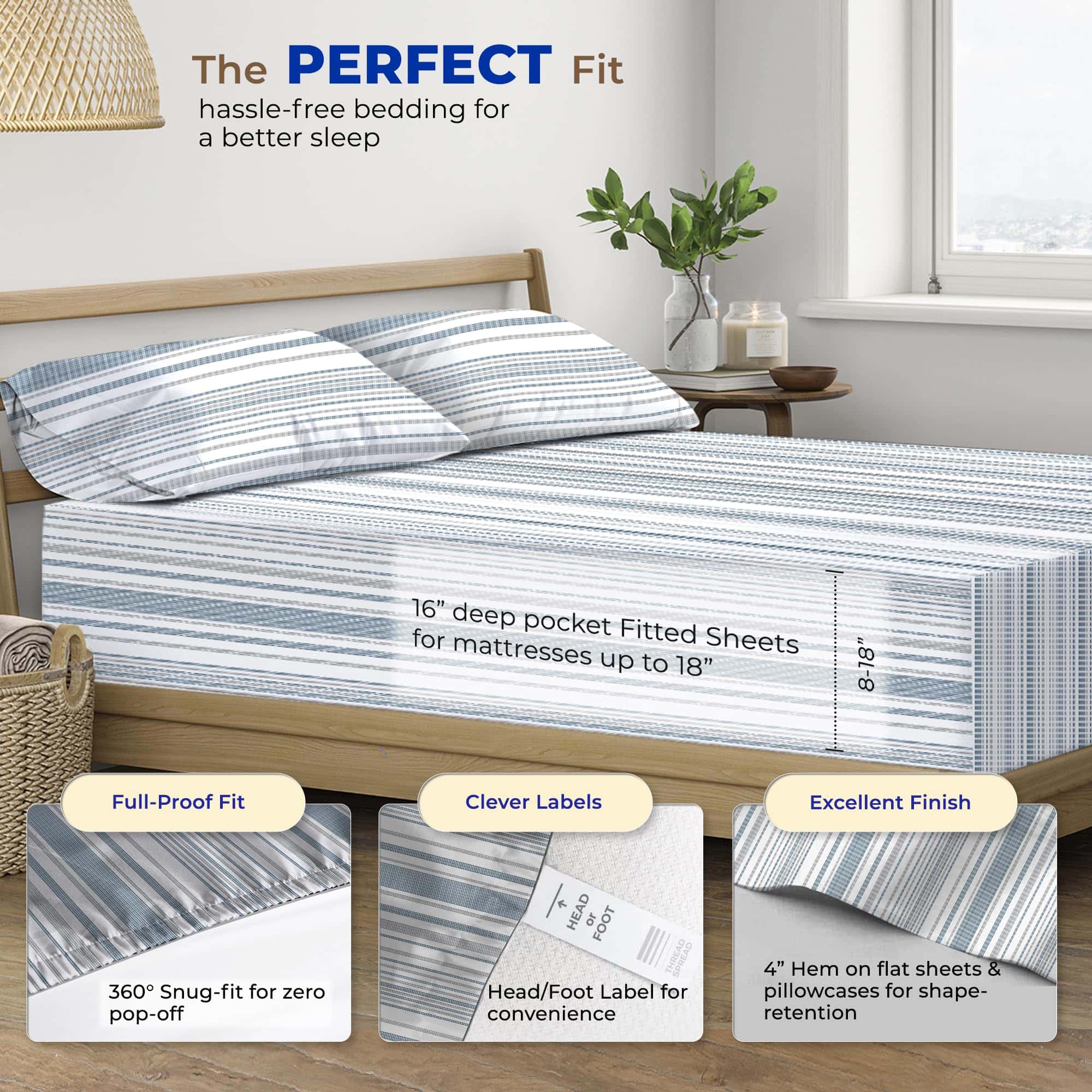 Juego De Sábanas 100% Algodón Egipcio Estampado -Estampado d