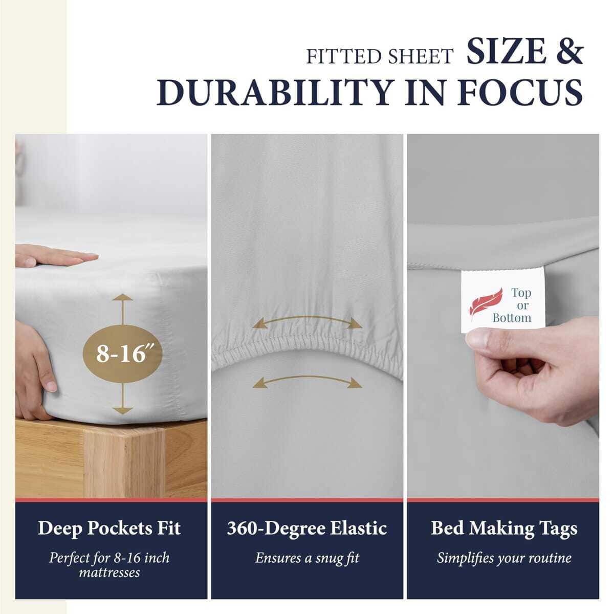 Juego de sábanas 100% algodón egipcio -Gris claro