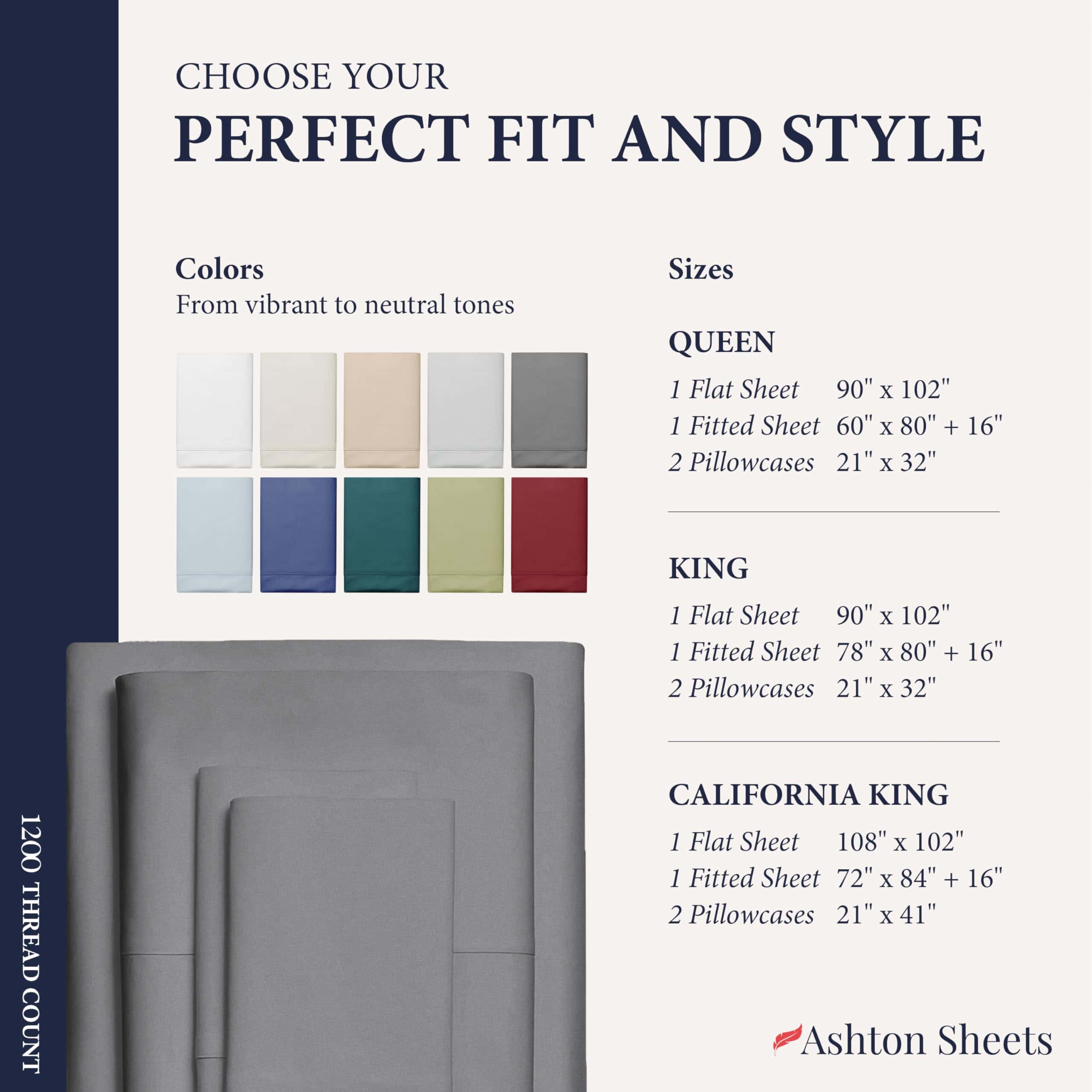 2. Rica y densamente pesada para una experiencia de hotel de 7 estrellas: Nuestras sábanas de alto hilo tamaño queen son voluptuosamente gruesas y pesadas, similares a las sábanas de alta gama de hotel de 7 estrellas. El tejido de satén añade un toque de brillo y glamour, elevando el aspecto y la sensación de tu dormitorio. Es cierto: Una vez que duermes en nuestras sábanas de algodón egipcio 100% tamaño queen, es difícil volver atrás. 3. Perfectamente frescas y transpirables para todas las estaciones: Nuestro juego de sábanas queen de algodón egipcio es refrescante y ultra transpirable durante todo el año para mantenerte cómodo mientras duermes. El lujoso juego de sábanas queen de algodón egipcio absorbe la humedad y maximiza el flujo de aire por la noche, lo que las hace perfectas para los durmientes calurosos. Además, estas sábanas queen de algodón egipcio están validadas por OEKO-TEX para estar libres de sustancias dañinas, lo que las hace ideales tanto para bebés como para adultos. 4. Disfruta del completo juego de sábanas de lujo de 4 piezas: El juego de sábanas tamaño queen de algodón egipcio de Ashton Sheets incluye 4 piezas – 1 sábana plana (90″ x 102″), 1 sábana ajustable (60″ x 80″ + 17″), y 2 fundas de almohada tamaño estándar / queen (21″ x 32″). La sábana ajustable elástica cuenta con un bolsillo extra profundo de 17 pulgadas para adaptarse fácilmente a colchones regulares y altos de hasta 19 pulgadas. Las fundas de almohada tienen un cierre abierto para que las almohadas extragrandes puedan deslizarse fácilmente. 5. Diseñado para durar resistente a las bolitas y al desvanecimiento de color: Todas nuestras sábanas queen de algodón egipcio están mercerizadas para mejorar el brillo de la tela, conservar el color brillante original en el lavado y resistir las bolitas y el desvanecimiento. Para asegurar que nuestras sábanas de cama de algodón egipcio tamaño queen duren mucho tiempo, lávalas a máquina en caliente y seca a baja temperatura. Ten en cuenta que nuestras sábanas de algodón egipcio se arrugan en el lavado. Plánchalas ligeramente después de sacarlas de la secadora para obtener un aspecto suave.