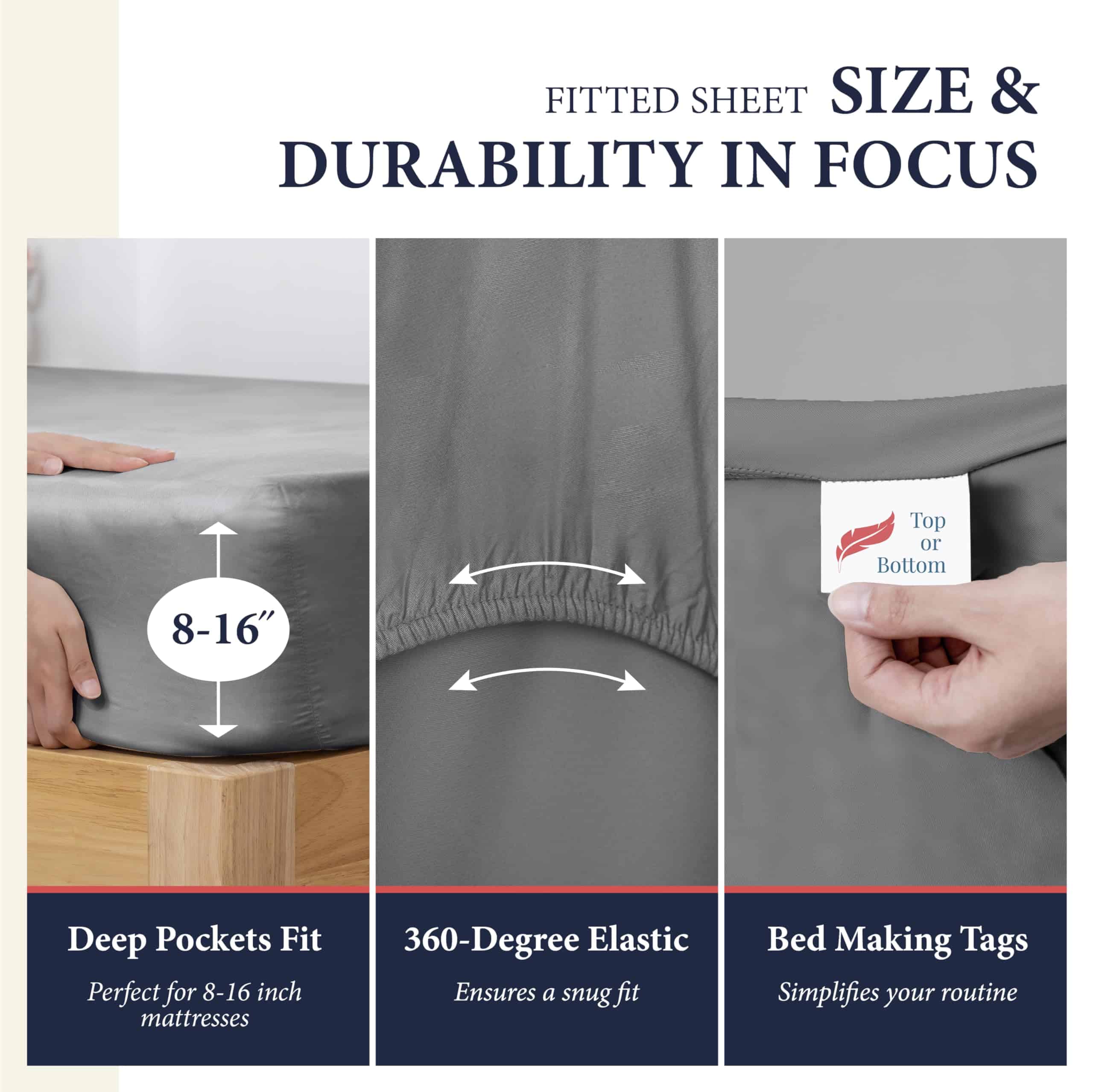 Juego de sábanas 100% algodón egipcio -Gris oscuro
