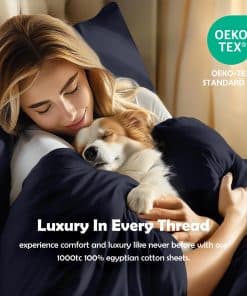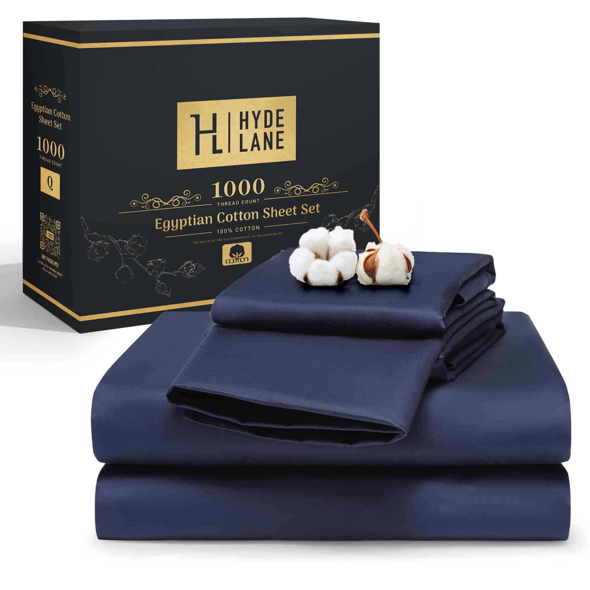 Hyde Lane se especializa en ropa de cama de alta gama y comodidad para dormir. Fabricado en algodón egipcio 100%, este juego de sábanas posee una densidad de 1000 hilos por pulgada cuadrada, utilizando un delicado tejido de satén. La sábana bajera tiene un bolsillo de 18 pulgadas de profundidad, adecuado para colchones de hasta 18 pulgadas de grosor. Incluye una sábana ajustable, una sábana plana y dos fundas de almohada. Además, cuenta con certificación OEKO-TEX estándar 100 para tu tranquilidad en cuanto a la salud. Lavado fácil, en agua fría o tibia, secado a baja temperatura y sin luz solar directa.