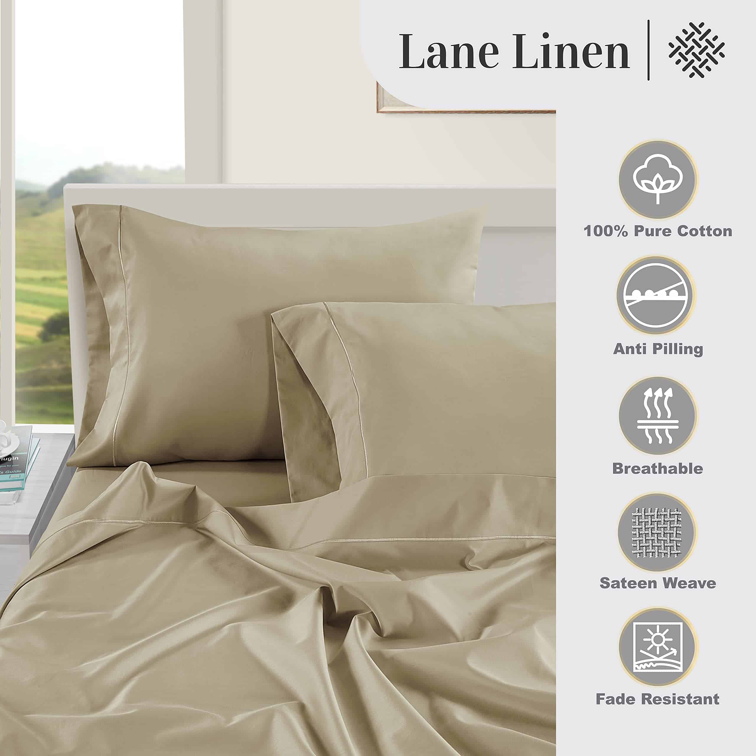 1. Sensación lujosa: Disfruta de la máxima comodidad y lujo con este juego de sábanas completo de Lane Linen de 1000 hilos de algodón diseñado específicamente para tus juegos de cama completos. El alto recuento de hilos del juego de sábanas completo con bolsillo profundo garantiza una textura suave como la seda, haciéndolos las sábanas de lujo perfectas para camas de tamaño completo.