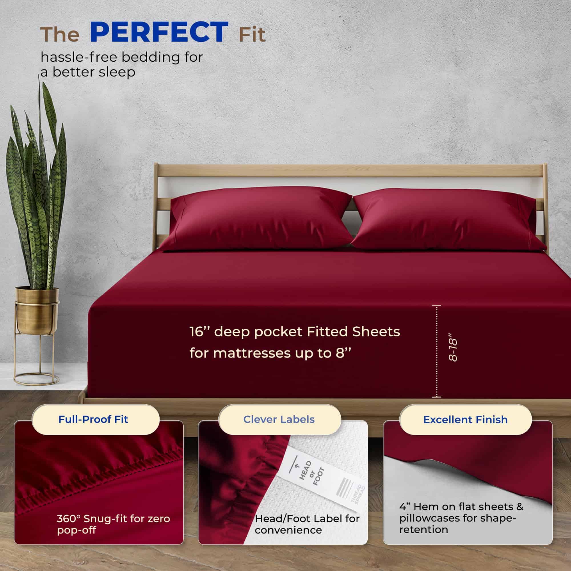Juego de sábanas 100% algodón egipcio para -Borgoña