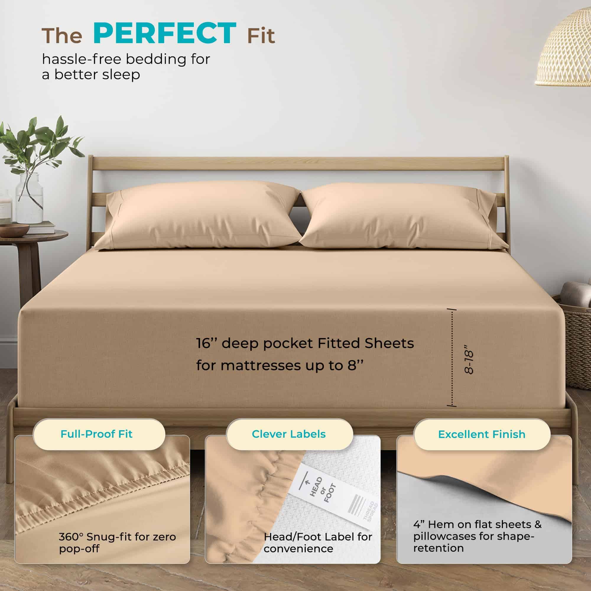 Juego de Sábanas 100% algodón egipcio para -Taupe
