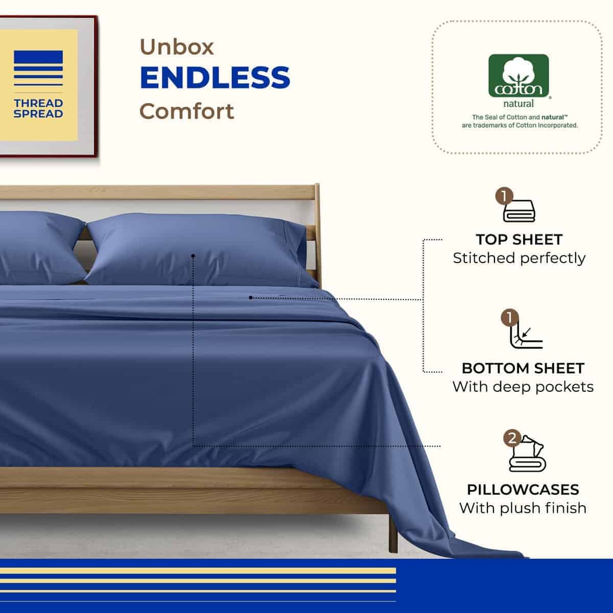 Juego de sábanas 100% algodón egipcio puro -Azul profundo