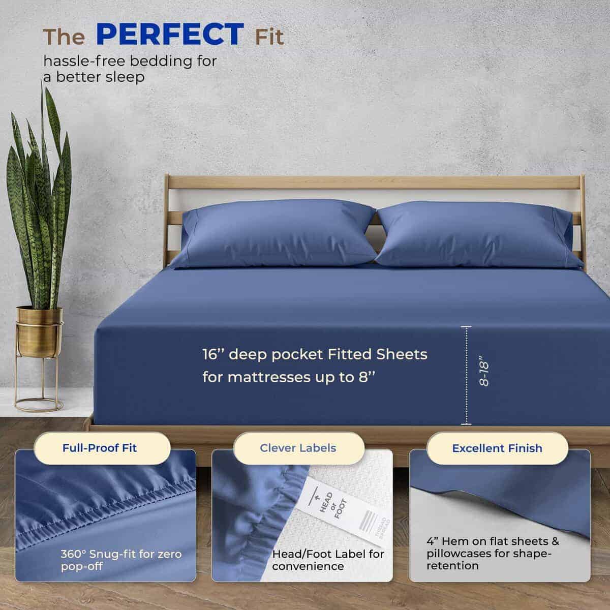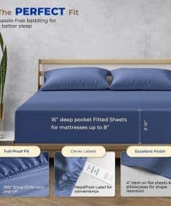 1. Juego de sábanas de algodón egipcio de primera calidad tamaño Queen: Nuestras sábanas azul medio, tamaño Queen de bolsillo profundo son suaves como una nube y te ayudarán a tener un sueño más reparador. Estas sábanas Queen de bolsillo profundo hechas de hilos especialmente compactados de 100% algodón de fibra larga son estándar 100 por OEKO-TEX asegurando un recuento de hilos y rendimiento. 2. Juego de sábanas tamaño Queen de 1000 hilos, bolsillo profundo (conjunto de 4 piezas): Este lujoso juego de sábanas tamaño queen de 1000 hilos viene con una sábana plana (90 x 102), una sábana ajustada de bolsillo profundo tamaño queen (60 x 80 + 16″) con un elástico que se ajusta a un colchón de 16″ de grosor, y un par de fundas de almohada de tamaño estándar 21 x 32. 3. ¡Sábanas sedosas suaves! Se siente como si se hicieran de sábanas de algodón egipcio puro que son reconocidas por su suavidad y durabilidad. Aplicamos un acabado de primera calidad de satén a nuestro juego de sábanas azul medio tamaño queen, ofreciendo un aspecto lustroso como la seda o el satén, pero asegurando la transpirabilidad y la sensación natural. 4. Resistente al pelado y a la decoloración: Nuestro juego de sábanas de satén tamaño queen utilizan hilos de la mejor calidad que son resistentes al pelado y a la decoloración. ¡No corras el riesgo con otros juegos de sábanas de cama tamaño queen que son ásperos y se desvanecen en el lavado, tú mereces lujo! 5. ¡Sin riesgos para ti! En Threadspread, estamos comprometidos con la calidad y ofrecerte las mejores sábanas posibles. En caso de que tengas algún problema, puedes escribirnos directamente y tus quejas serán atendidas de inmediato, y puedes devolvernos el producto dentro de los 30 días para obtener un reembolso.