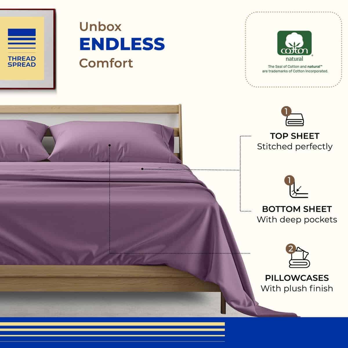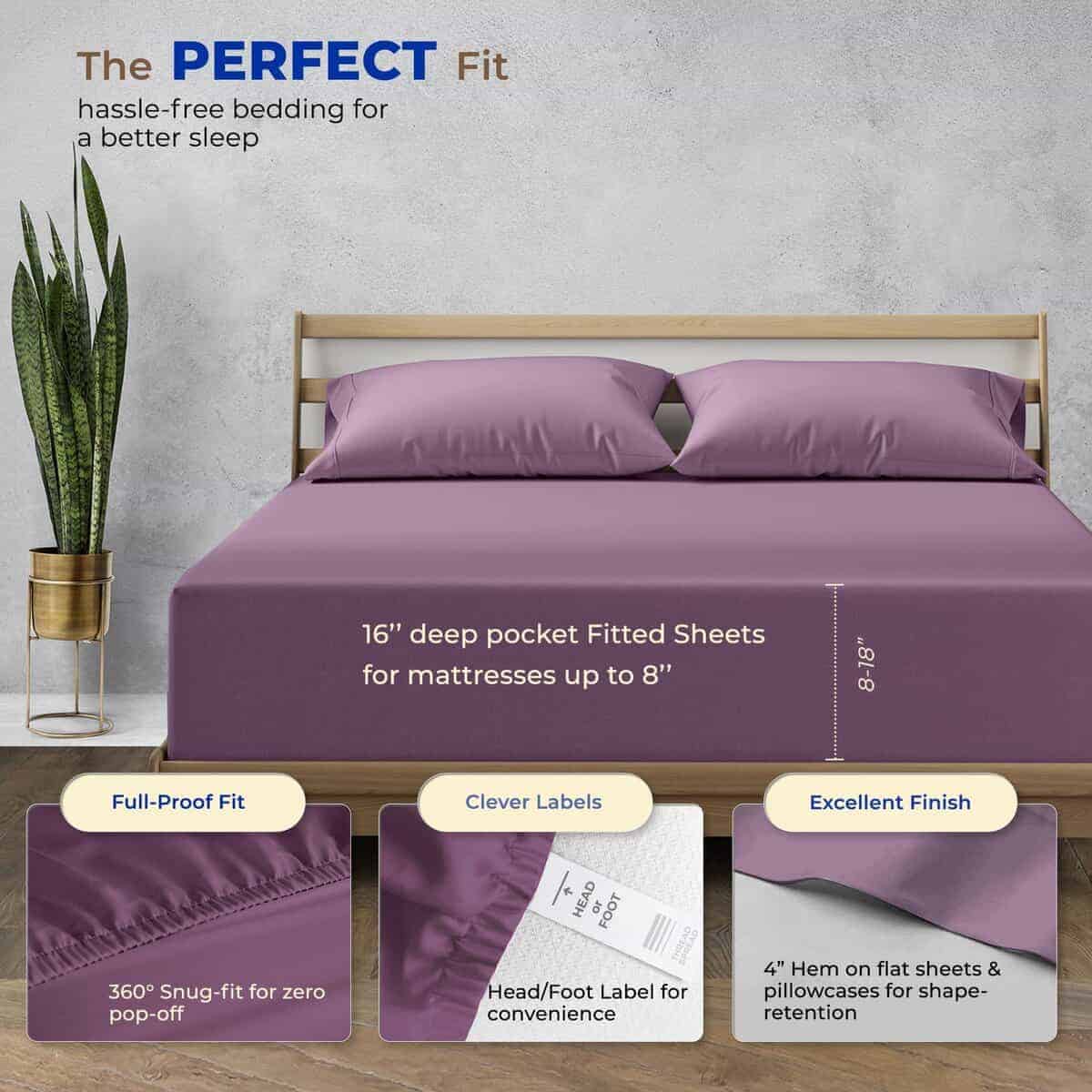 Juego de sábanas 100% algodón egipcio puro -Ciruela