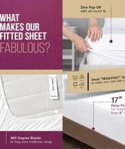 4. Incluye un juego completo y ajustado de 4 piezas: El juego de sábanas de algodón egipcio tamaño Queen incluye 4 piezas – 1 sábana plana (90″ x 102″), 1 sábana ajustable (60″ x 80″ + 17″), y 2 fundas de almohada tamaño estándar / queen (21″ x 32″). La sábana ajustable elástica viene con un bolsillo extra profundo de 17 pulgadas para acomodar fácilmente colchones regulares y altos de hasta 19 pulgadas. Las fundas de almohada tienen un cierre abierto para que las almohadas grandes puedan deslizarse fácilmente.