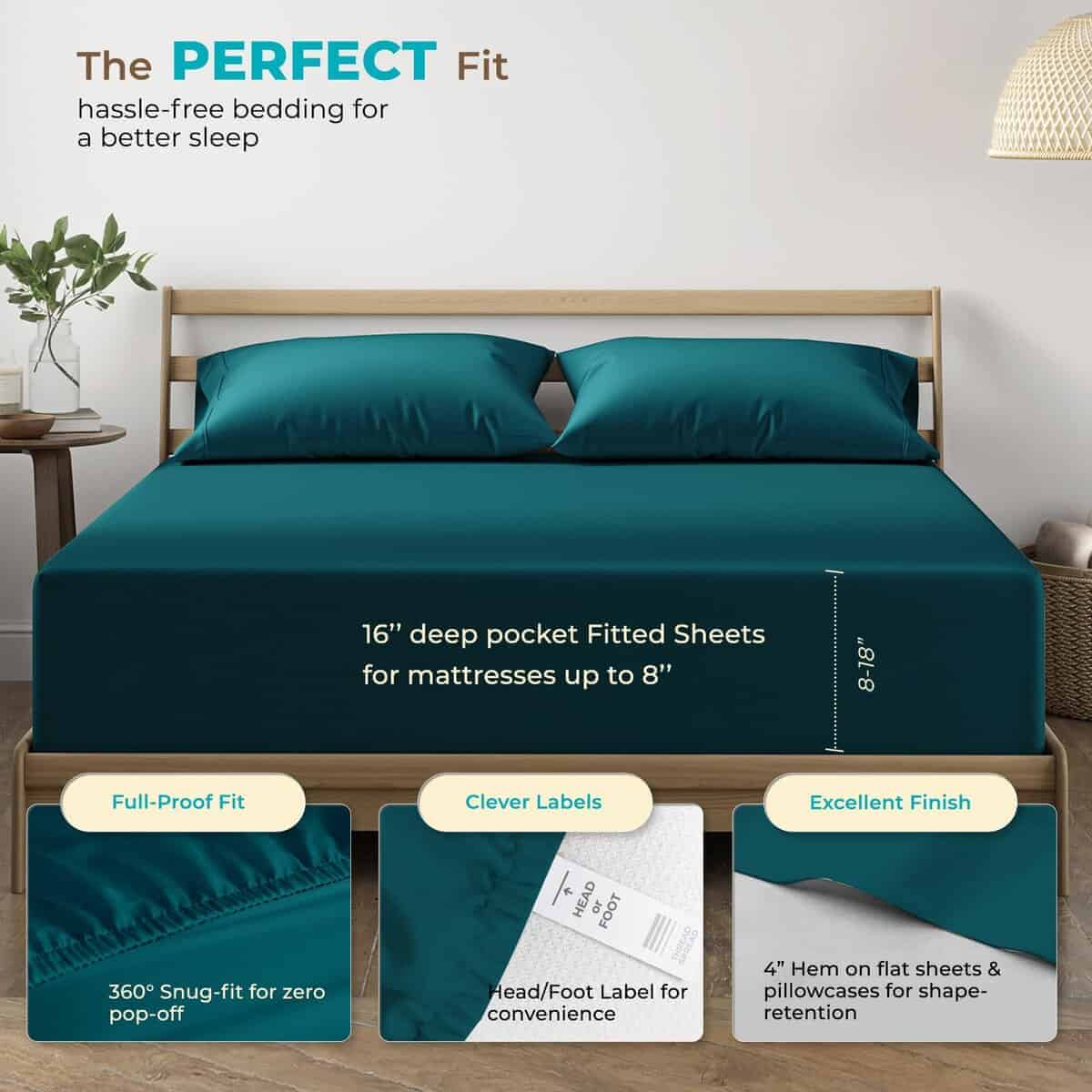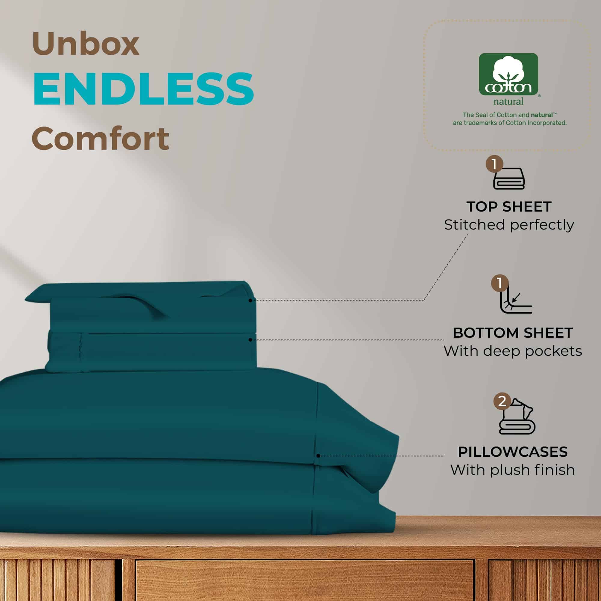 Luxurious Five-Star Hotel 100% Egyptian Cotton Sheet Set: Crafted from 100% Extra Long-Staple Egyptian Cotton, our sheet sets are softer and more durable for improved plushness. The 800 THREAD COUNT cotton bed sheets are buttery smooth and silky with a rich sateen weave that adds luminous touch to the bedding. These are heavyweight, cooling, and breathable for the ultimate five-star hotel luxury and all-season comfort. What Comes In The Set: Our Teal Cotton Sheets For King Size Bed Has 4 Pieces: 1 Top Flat Sheet (108 W X 102 L), 1 Fitted Bottom Sheet (78 W X 80 L + 16 ), And 2 King Size Pillowcases (21 W X 41 L). The Fitted Sheet Has Deep Pockets To Fit Adjustable Mattresses From 8 Inches To 16 Inches Deep. Clever Head/Foot Tags Help You To Make The Bed Easily. Pair This Egyptian Cotton Quality Sheets King Size With A Matching Comforter And Duvet Cover To Elevate The Home/Room Decor. Safe For You & Your Family: Cotton is naturally-sourced and earth-friendly, unlike microfiber and other linens that are not ideal for your health and skin. At Thread Spread, we focus on healthy and quality living, and our luxury sheets are certified as STANDARD 100 BY OEKO-TEX to be free from harmful substances. Care Instructions: Thread Spread recommends washing the sheets at least once a week. You can either tumble dry or hang the sheets outside to dry. These deep pocket cotton king sheets are resistant to shrinking, fading, and pilling. The fabric opens up in a few washes and becomes softer and smoother. Remove these luxury bed sheets from the dryer as soon as the cycle ends to prevent wrinkles. You Matter The Most: We?re confident that you will love our Egyptian cotton king size sheets. In case you’re unhappy with the purchase, we have a flexible return/refund policy to get the items exchanged or refunded. You can also gift our best Egyptian cotton sheets to your loved ones on Mother?s Day, Father?s Day, Women?s Day, Men’s Day, Christmas, Valentine’s Day, Halloween, Weddings, Vacations, and Autumn Holidays