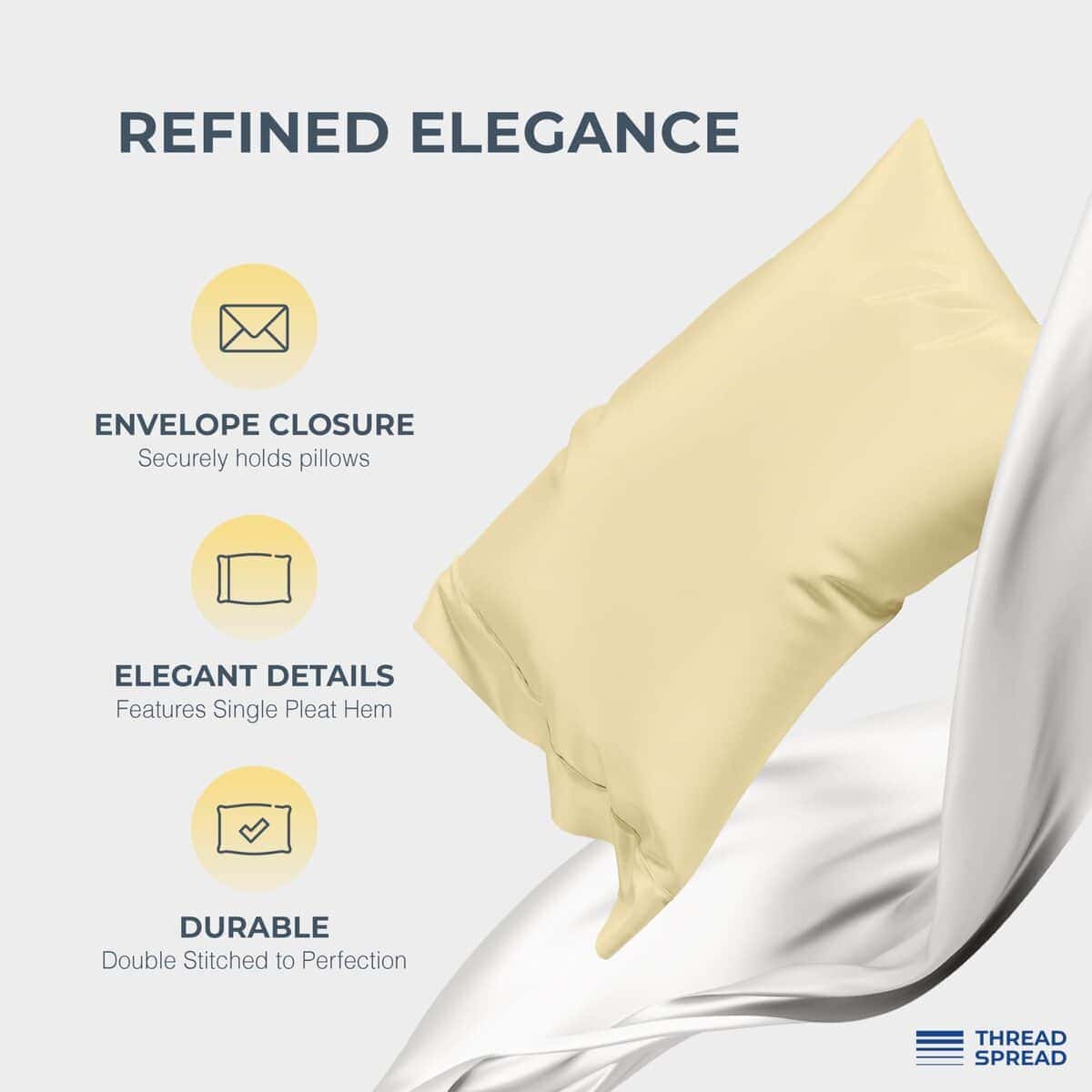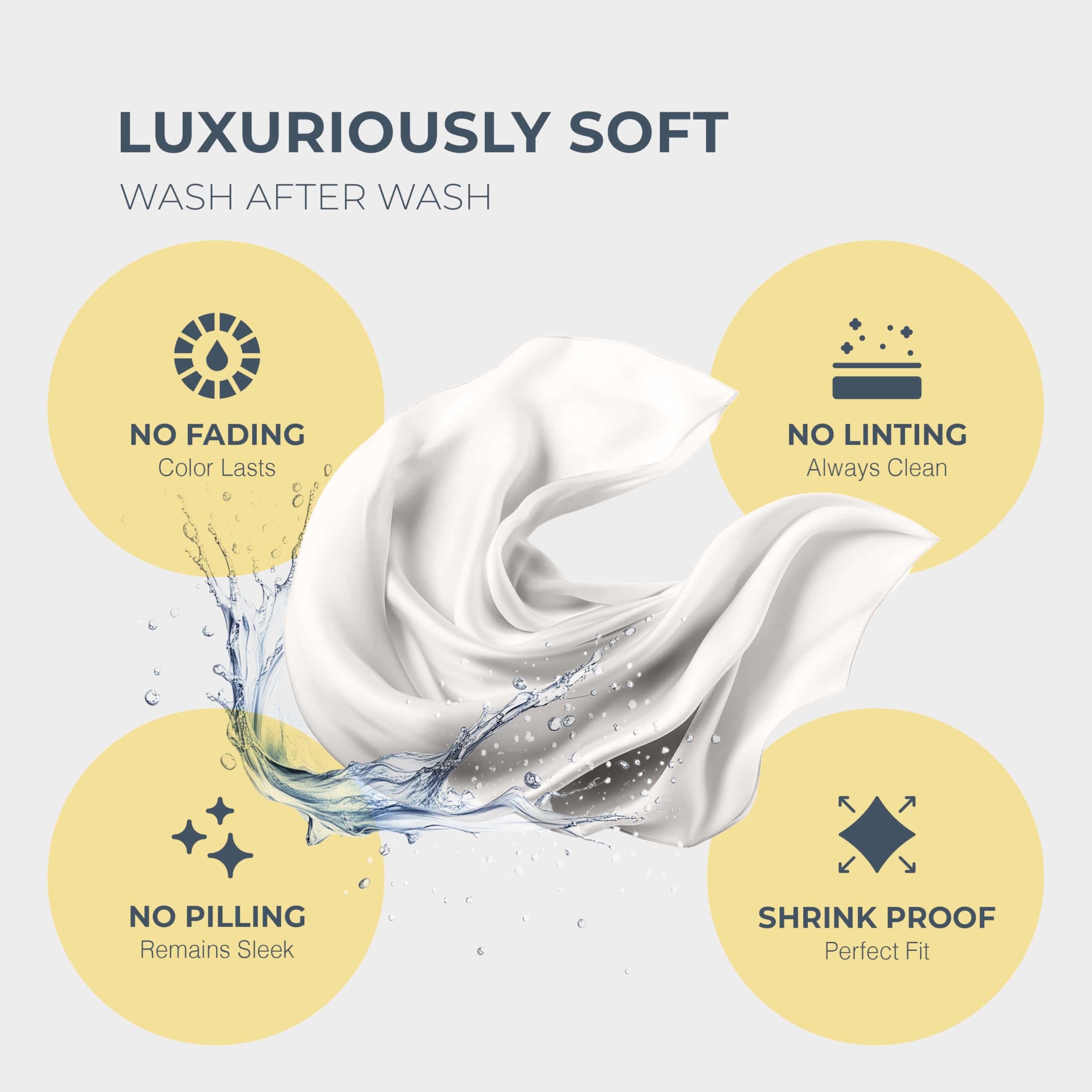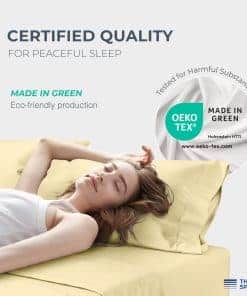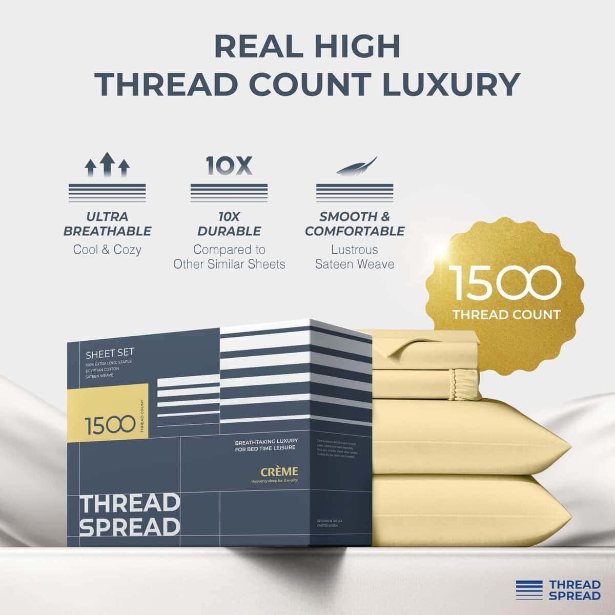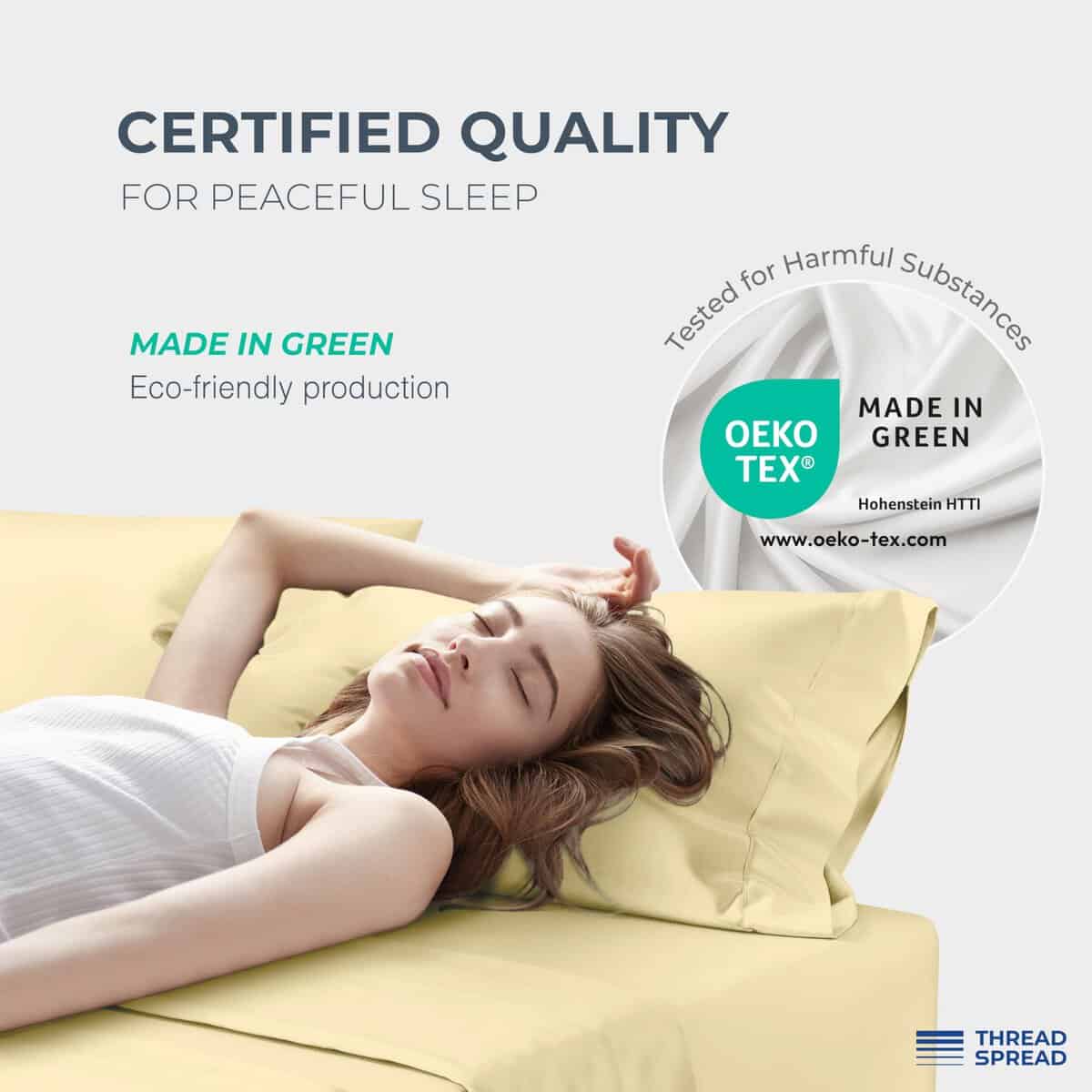2. Sumérgete en la elegancia incomparable que recuerda a opulentos refugios de 7 estrellas: Sumérgete en el abrazo lujoso de nuestro juego de sábanas queen de algodón egipcio, exudando una sensación pesada y suntuosa que hace eco de la grandeza de exclusivos refugios 7 estrellas. El lujoso tejido de satén otorga un brillo resplandeciente a la tela, proporcionando una experiencia sensorial de las suites de hoteles más prestigiosas. Diseñadas para aquellos con gustos exigentes, estas sábanas de algodón egipcio tamaño queen ofrecen un lujo y comodidad incomparables. 3. Confeccionadas a la perfección para un ajuste perfecto en tu colchón: Diseñado con precisión para un ajuste impecable, el juego de sábanas de algodón egipcio de Thread Spread cuenta con una sábana ajustable elástica con bolsillos profundos de 17 pulgadas, que se adapta fácilmente a colchones estándar y altos de hasta 19 pulgadas. Abrazando cada curva de tu cama con elegancia, nuestro juego de sábanas queen de alto recuento de hilos de 4 piezas incluye 1 sábana plana (90″ x 102″), 1 sábana ajustable (60″ x 80″ + 17″ + bolsillo profundo), y 2 fundas de almohada (21″ x 32″). 4. Autenticado exclusivamente por su calidad y pureza ejemplares: En Thread Spread, mantenemos los más altos estándares de excelencia y autenticidad. Cada juego de sábanas queen pasa por un meticuloso proceso de mercerización, que le otorga suavidad y durabilidad genuinas. Validado de forma independiente por OEKO-TEX, nuestras lujosas sábanas queen de bolsillo profundo están certificadas libres de sustancias dañinas, garantizando un santuario pacífico y lujoso para ti y tus seres queridos. 5. Instrucciones de cuidado adecuadas para la realeza: Libera todo el esplendor de tus sábanas de lujo de algodón egipcio para cama queen con nuestras instrucciones de cuidado adaptadas para la realeza. Lava a máquina con agua tibia en un ciclo suave, asegurando lavados separados para mantener el brillo duradero. Seca en secadora a baja temperatura para mantener la suavidad prístina, o disfruta del ritual regio de planchar para un acabado impecable. Observa cómo estas sábanas queen de lujo, se vuelven más suaves con cada lavado amoroso.