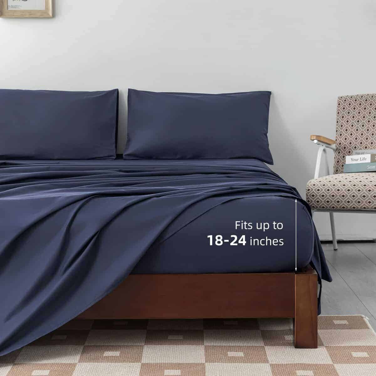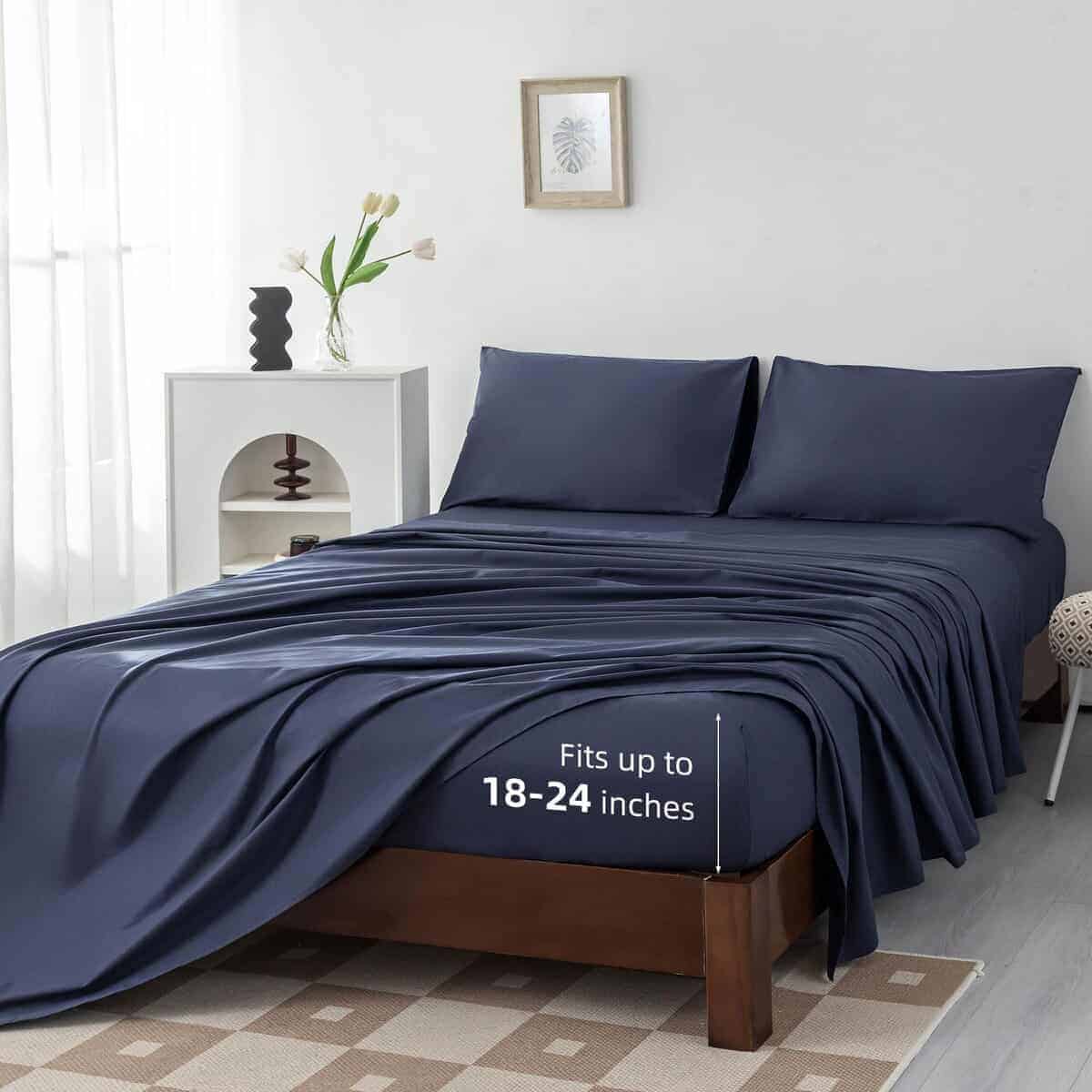 Levoo juego de sábanas completo de 4 piezas incluye 1 sábana plana (81″x96″), 1 sábana ajustada (54″x75″x20″) y 2 fundas de almohada (20″x30″). Las cualidades mejoradas de los tejidos de algodón y la costura exquisita garantizan una durabilidad excepcional. Las sábanas de algodón en tamaños adecuados añaden elegancia a tu habitación. El bolsillo extra profundo del juego de sábanas completo se adapta a colchones extra profundos de 18″-24″. La sábana ajustada de algodón completo está diseñada con una banda elástica reforzada y elástica alrededor del borde, por lo que no se subirá o moverá. Las sábanas de algodón completo son suaves y transpirables, con una excelente absorción de la humedad y transpirabilidad. Las sábanas de algodón promueven un mejor flujo de aire y regulan la temperatura durante toda la noche. La tela de algodón 100% tiene un tacto suave, haciéndote enamorar de dormir. Las sábanas de algodón completo pueden usarse en todas las estaciones. Consejos cálidos: Por favor, lave el juego de sábanas completo de algodón en agua fría, ciclo suave, luego séquelo a temperatura baja cuando sea necesario. La tela de algodón se volverá más suave con cada lavado.