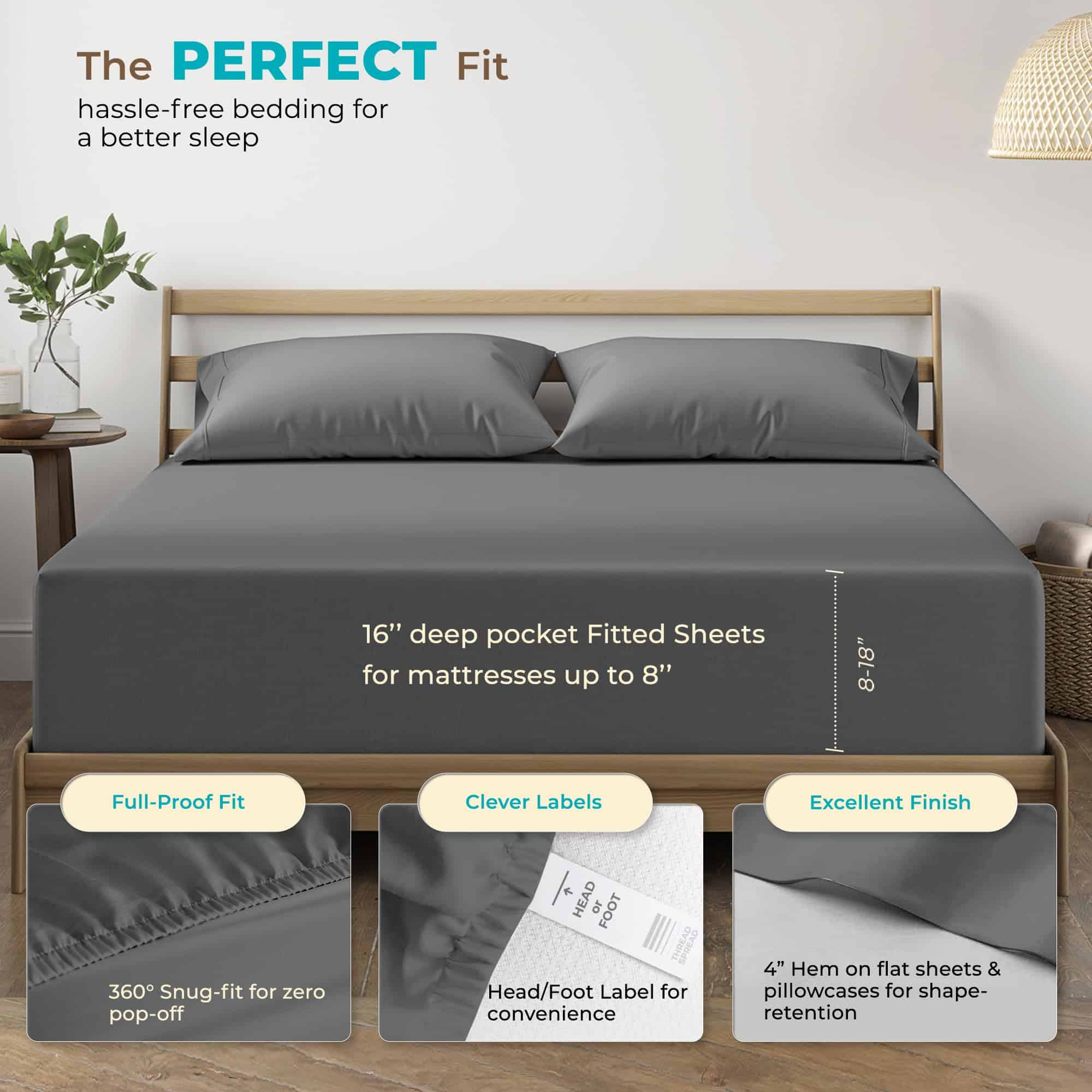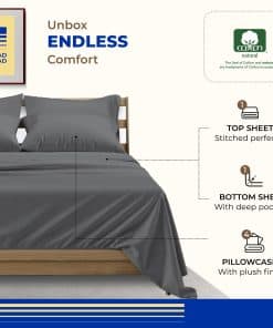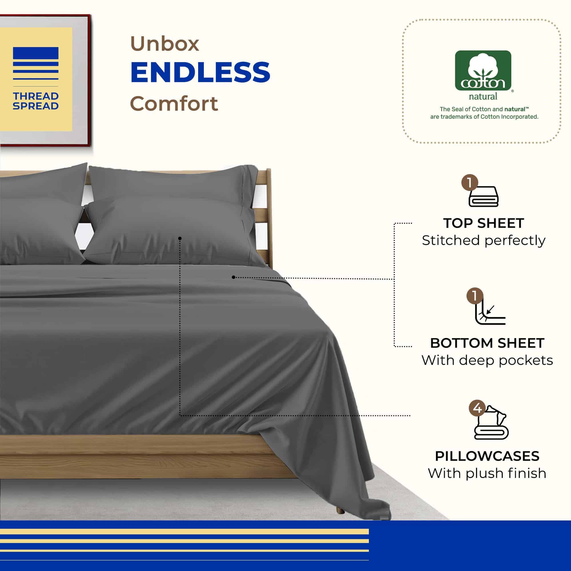 Juego de Sábanas 100% Algodón Egipcio Tamaño -Gris Oscuro