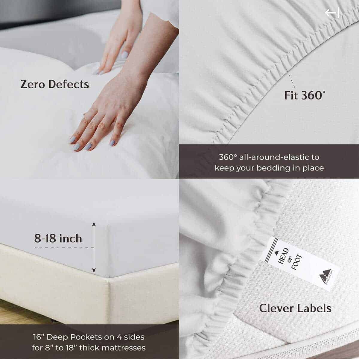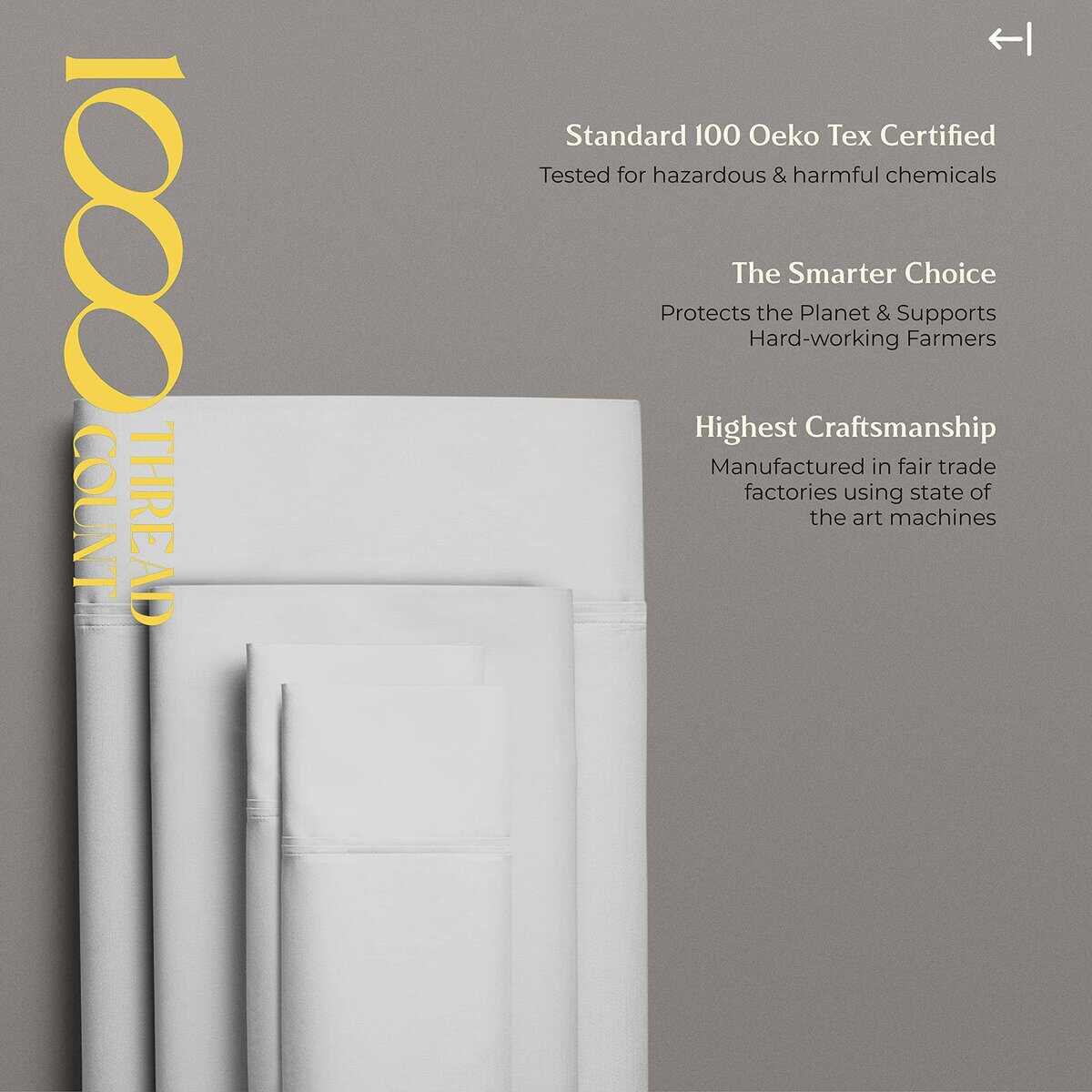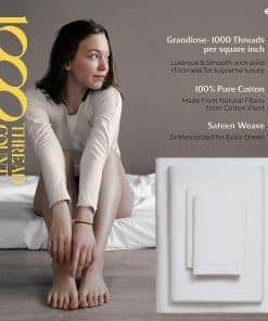 ¿QUÉ HAY EN LA BOLSA 1 sábana plana – 102 W x 108 L | 1 sábana inferior – 39 W x 75 L + 16 profundidad de bolsillo | 1 fundas de almohada tamaño Queen – 21 W x 32 L ¿QUÉ CONVIERTE A NUESTRAS SÁBANAS EN LAS MÁS SUAVES Y LUJOSAS DEL MERCADO HOY EN DÍA: Cuanto más larga sea la fibra, más suave será el tejido. Utilizamos fibras de algodón de fibra extra larga para hacer los juegos de sábanas más suaves y acogedores. 1000 hilos se tejen en cada pulgada cuadrada de tela para mejorar la resistencia, la resistencia al apelmasado y la contracción, y la suavidad de la tela. Después, las sábanas se mercerizan para un tacto más suave, un mayor lustre y para hacer que los colores parezcan más brillantes que las sábanas de algodón normales. ¿SON COMPARABLES A LA ROPA DE CAMA DE CINCO ESTRELLAS DE HOTEL: Sí. El tejido de satén proporciona un tacto suave y sedoso que se siente similar a la textura de las sábanas de cama de un hotel de cinco estrellas. Estas sábanas de algodón son suaves, frescas y transpirables, como las que descansas en un hotel de cinco estrellas. ¿SON ESTAS SÁBANAS MÁS DURADERAS QUE OTRAS SÁBANAS DE ALGODÓN: Puedes decir que sí. Las sábanas hechas con algodón de fibra extra larga tienden a deshilacharse menos, a apelotonarse menos, a arrugarse menos y durar más tiempo que otras sábanas de algodón, sábanas de microfibra y sábanas de poliéster. ¿CÓMO HACEMOS SÁBANAS QUE SE AJUSTAN PERFECTAMENTE A TU CAMA: Cada sábana inferior tiene elástico de plena actuación y bolsillos profundos para adaptarse a todos los colchones de hasta 18 pulgadas de profundidad. Las etiquetas inteligentes indican el lado del largo y el ancho para que puedas hacer la cama fácilmente. Las fundas de almohada tienen cierres de sobre para que las almohadas se queden dentro de la funda. Ves, nosotros hicimos todo el trabajo aquí para que no tengas que hacerlo. POR QUÉ MÁS DE 1 MILLÓN DE CLIENTES NOS CONFIAN: Cada paso de nuestro proceso es sostenible y ético para todos. Eso significa que nuestro juego de sábanas de algodón se cultiva naturalmente. Estamos certificados por STANDARD 100 por OEKO-TEX, lo que significa que nuestra ropa de cama está libre de sustancias dañinas. Por último, todo nuestro embalaje es libre de plástico, lo que nos convierte en una opción amigable y sostenible.
