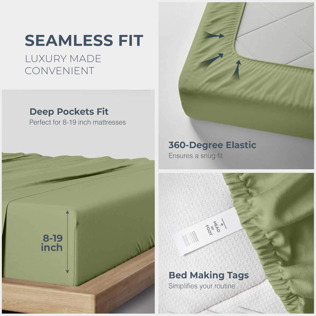 Juego de sábanas 100% algodón egipcio tamaño -Verde salvia