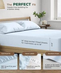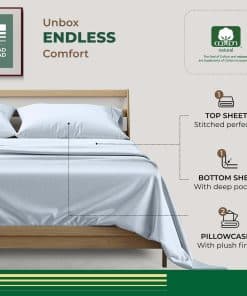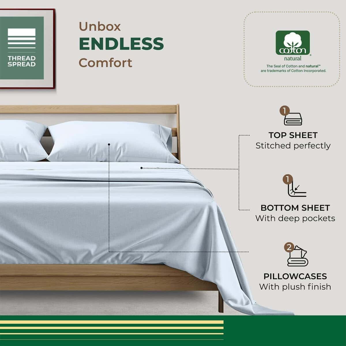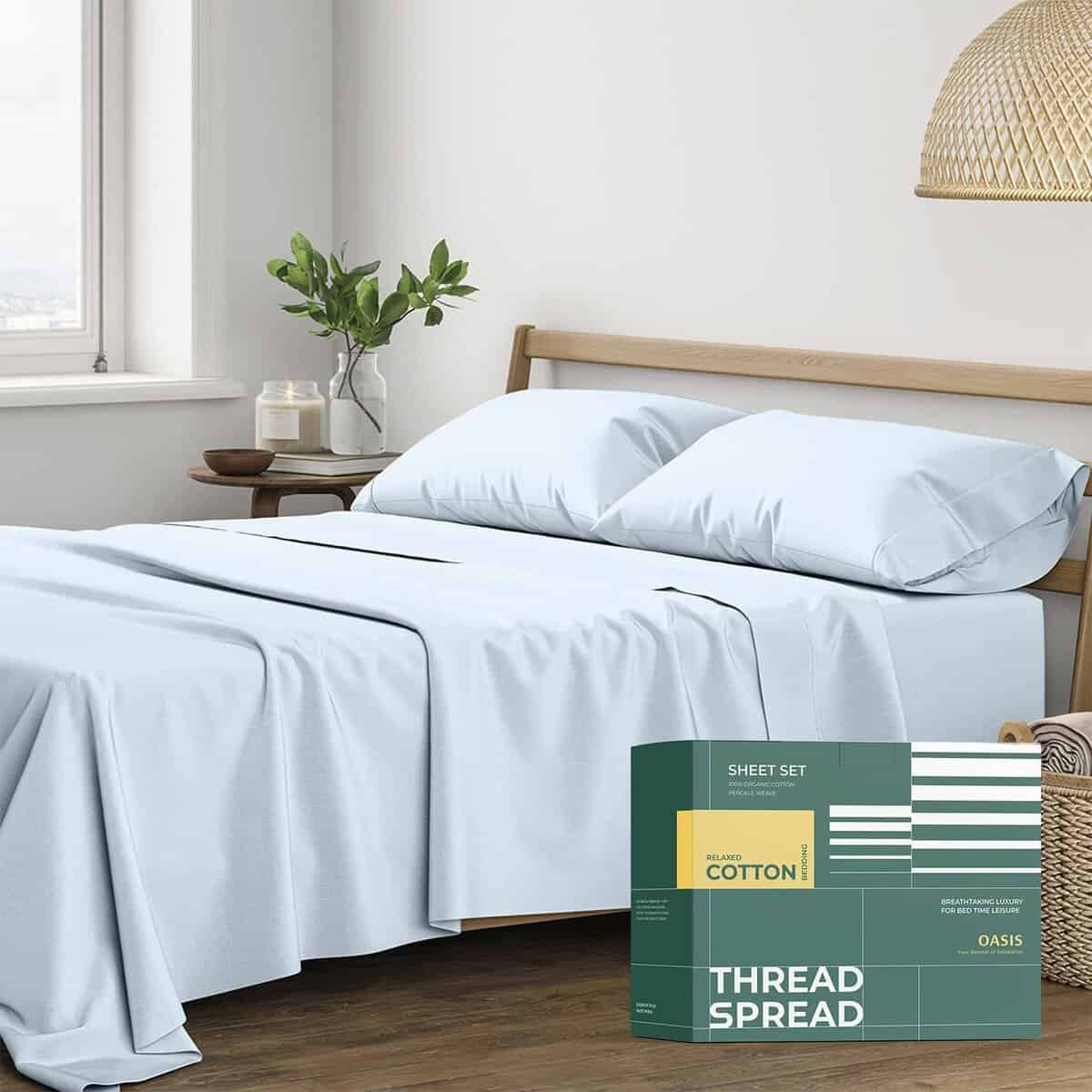Juego de Sábanas 100% Algodón Orgánico -Azul Claro