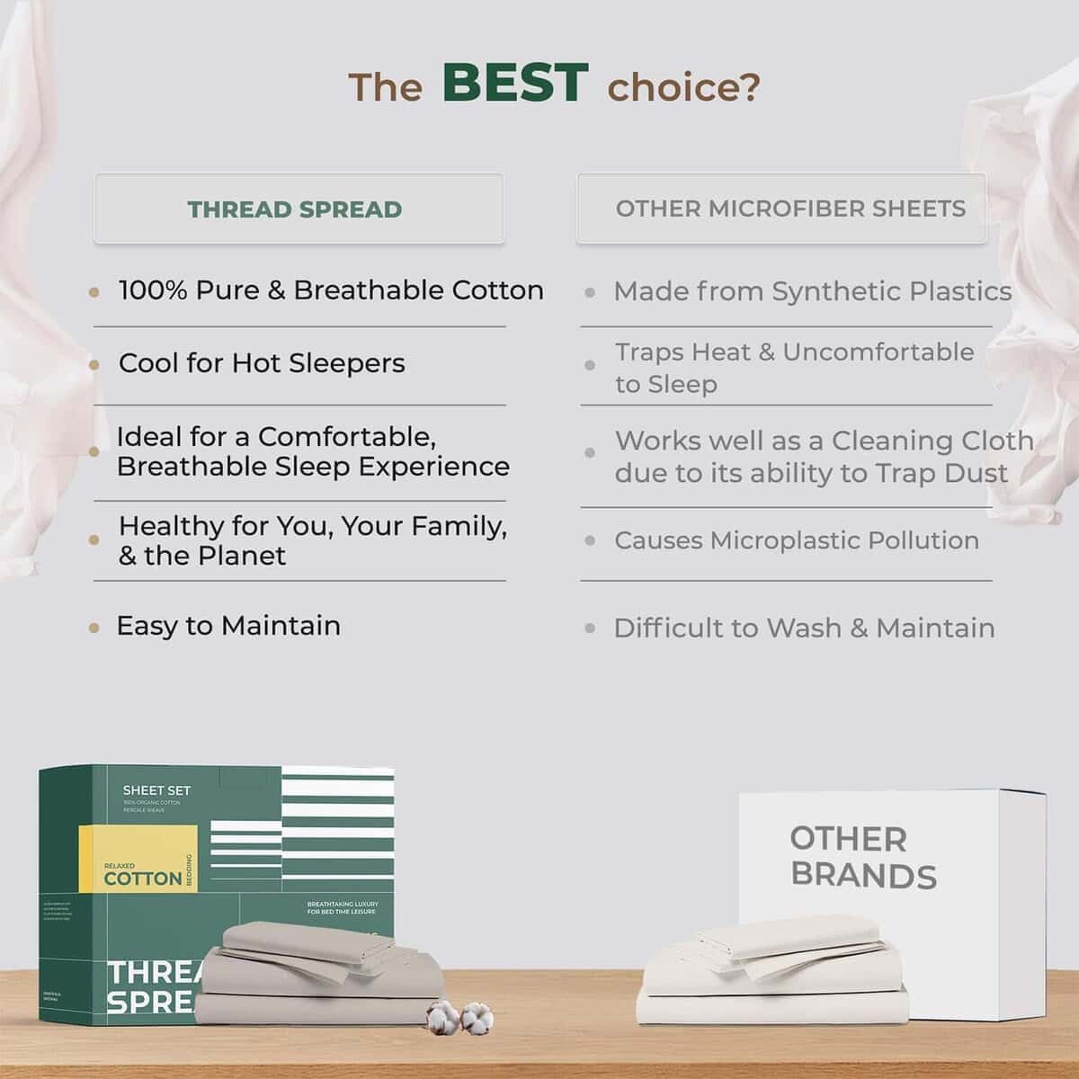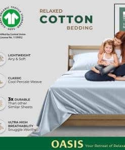 Di adiós al calor atrapado y da la bienvenida a la frescura con nuestro juego de sábanas tamaño queen orgánicas 100% algodón. Fabricadas con algodón orgánico certificado y tejido percal, estas sábanas son ideales para quienes duermen calientes o sufren de sudoraciones nocturnas. Además, son suaves, ligeras y transpirables, convirtiéndolas en la mejor elección para el verano. Los certificados OEKO-TEX y GOTS garantizan que nuestras sábanas no contienen sustancias nocivas y cumplen con las directrices del algodón orgánico. Adquiere la tranquilidad de un producto seguro y de calidad para tu descanso. Las sábanas de algodón reales que se vuelven más suaves con cada lavado. Mantienen su color y no se desgastan, ¡pero sí tienden a arrugarse, tal como el percal. Para reducir las arrugas, usa bolas secadoras o plancha después del lavado. El juego de 4 piezas incluye una sábana superior, una sábana ajustable y dos fundas de almohada estándar / queen. Las sábanas ajustadas tienen bolsillos profundos extra anchos y elástico en todo el contorno para adaptarse al colchón. Con etiquetas en la cabeza y los pies para indicar los lados de la sábana, hacer la cama será rápido y fácil. Renueva tu dormitorio con la frescura y calidad de estas sábanas orgánicas.