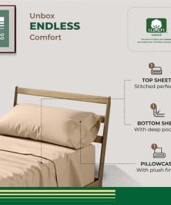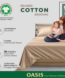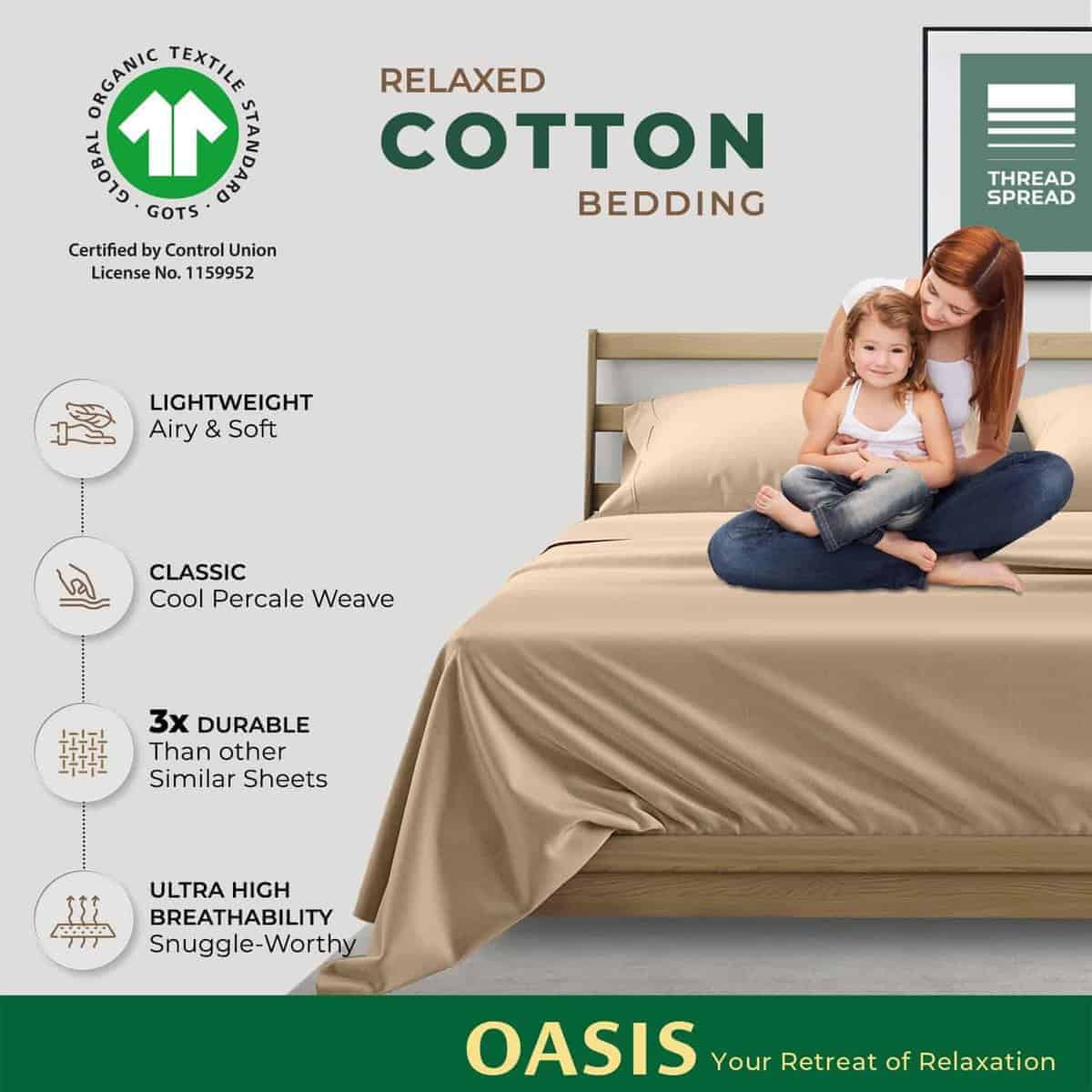 Si te gusta la sensación liviana, fresca y ligera del tejido de percal, nuestras sábanas de algodón percal 100% para camas individuales XL son perfectas para ti. Suficientemente ligeras para hacerte flotar en el sueño, y suaves y crujientes en el grado correcto, nuestras sábanas de algodón 100% para camas individuales XL son un básico durante todo el año especialmente durante los veranos. Hechas de algodón orgánico 100% de fibra larga, nuestras sábanas de percal para camas individuales XL son súper frescas y transpirables e ideales para personas que duermen calientes. El patrón uno-sobre-uno-debajo le da al tejido un aspecto apretado y estructurado, aumentando el flujo de aire y manteniéndolo más fresco durante toda la noche. Nuestro juego de sábanas de percal para camas individuales XL incluye tres piezas: 1 sábana plana, 1 sábana ajustable y 1 funda de almohada. Las sábanas ajustables tienen bolsillos extra profundos (16 pulgadas) y elástico en todo el contorno para acomodar colchones grandes. Las etiquetas de cabeza/pie indican la longitud y anchura de la sábana. Las fundas de almohada tienen cierres abiertos para deslizar las almohadas con facilidad. Si buscas una sola sábana o fundas de almohada, visita nuestra tienda para ver la colección de dormitorio. Todas nuestras sábanas de algodón percal para camas individuales XL de alta calidad son certificadas por el Global Organic Textile Standard (GOTS), lo que significa que toda la producción cumple con las estrictas pautas orgánicas. También están validadas por OEKO-TEX STANDARD 100 para garantizar que nuestras sábanas de percal para camas individuales XL son libres de sustancias dañinas. Las sábanas de algodón percal se mantienen hermosas después del lavado. Se vuelven más suaves en cada lavado y no se decoloran ni se agrupan. Sin embargo, las sábanas de percal se arrugan. Tire bolas secadoras mientras lava nuestras sábanas de algodón para camas individuales XL en la máquina o plancharlas después para minimizar las arrugas.