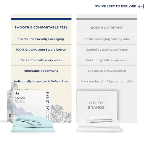 Si te gusta la sensación liviana, fresca y aireada del tejido de percal, nuestras Sábanas de Algodón 100% Tamaño Individual son perfectas para ti. Suficientemente ligeras para hacerte flotar en el sueño, y suaves y crujientes en el grado correcto, nuestros juegos de sábanas individuales de percal son imprescindibles durante todo el año, especialmente durante el verano. Hechas con algodón orgánico 100% de fibra larga, nuestras sábanas individuales de percal son súper frescas y transpirables, ideales para personas que tienden a tener calor al dormir. El patrón uno sobre uno bajo le da al tejido un aspecto apretado y estructurado, aumentando el flujo de aire y manteniéndote más fresco durante toda la noche. Nuestro juego de sábanas de algodón individual incluye tres piezas: 1 sábana plana, 1 sábana ajustada y 1 funda de almohada. Las sábanas ajustadas tienen bolsillos extra profundos (16 pulgadas) y elástico alrededor para acomodar colchones grandes. Las etiquetas de cabeza/pie indican la longitud y anchura de la sábana. Las fundas de almohada tienen cierres abiertos para deslizar las almohadas fácilmente. Si buscas una sola sábana o fundas de almohada, visita nuestra tienda para ver la colección de dormitorio. Todos nuestros juegos de sábanas individuales de algodón 100% de alta calidad están certificados Global Organic Textile Standard (GOTS), lo que significa que toda la producción cumple con las estrictas directrices orgánicas. También cuentan con la validación OEKO-TEX STANDARD 100 para garantizar que nuestras sábanas de algodón percal individual estén libres de sustancias dañinas. Las sábanas de algodón percal se mantienen hermosas después del lavado. Se vuelven más suaves con cada lavado y no pierden color ni forman bolitas. Sin embargo, las sábanas de percal se arrugan. Usa pelotas de secadora al lavar nuestras sábanas de algodón percal tamaño individual en la lavadora o plancharlas después para minimizar las arrugas