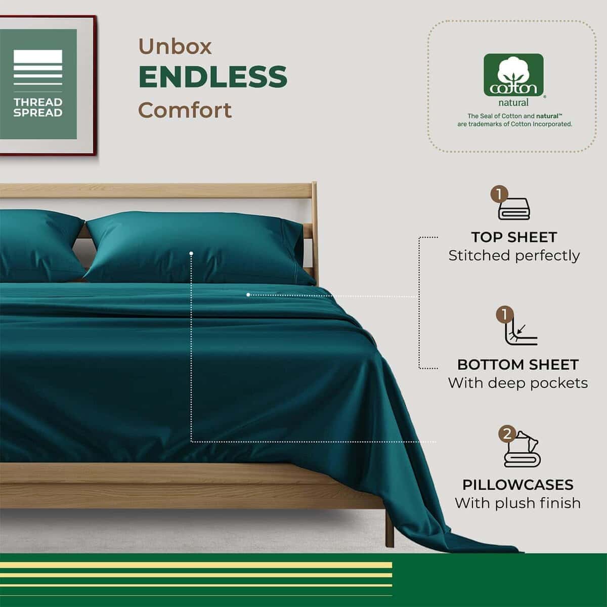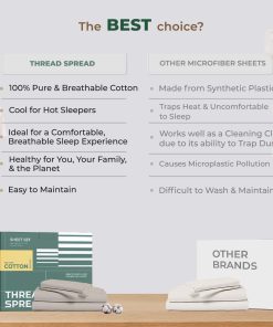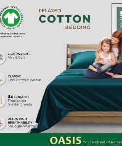 Thread Spread ofrece sábanas de algodón orgánico en tamaño completo que son frescas, transpirables y suaves al tacto. Perfectas para el verano o para aquellos que duermen calientes, estas sábanas de algodón percal tamaño completo son una excelente opción para mantenerse cómodo durante la noche. Certificadas por OEKO-TEX y GOTS, estas sábanas están libres de sustancias dañinas y cumplen con las pautas de algodón orgánico. Además, son resistentes a la decoloración y a la formación de bolitas, volviéndose más suaves con cada lavado. El juego completo de 4 piezas incluye una sábana superior o plana, una sábana ajustada o inferior y dos fundas de almohada. Las sábanas ajustadas tienen bolsillos profundos y elástico para un ajuste seguro al colchón. Con etiquetas en la cabeza y los pies para facilitar la colocación en la cama, estas sábanas de algodón tamaño completo son una adición de calidad para tu ropa de cama. Visita nuestra tienda Thread Spread para ver más productos de calidad.