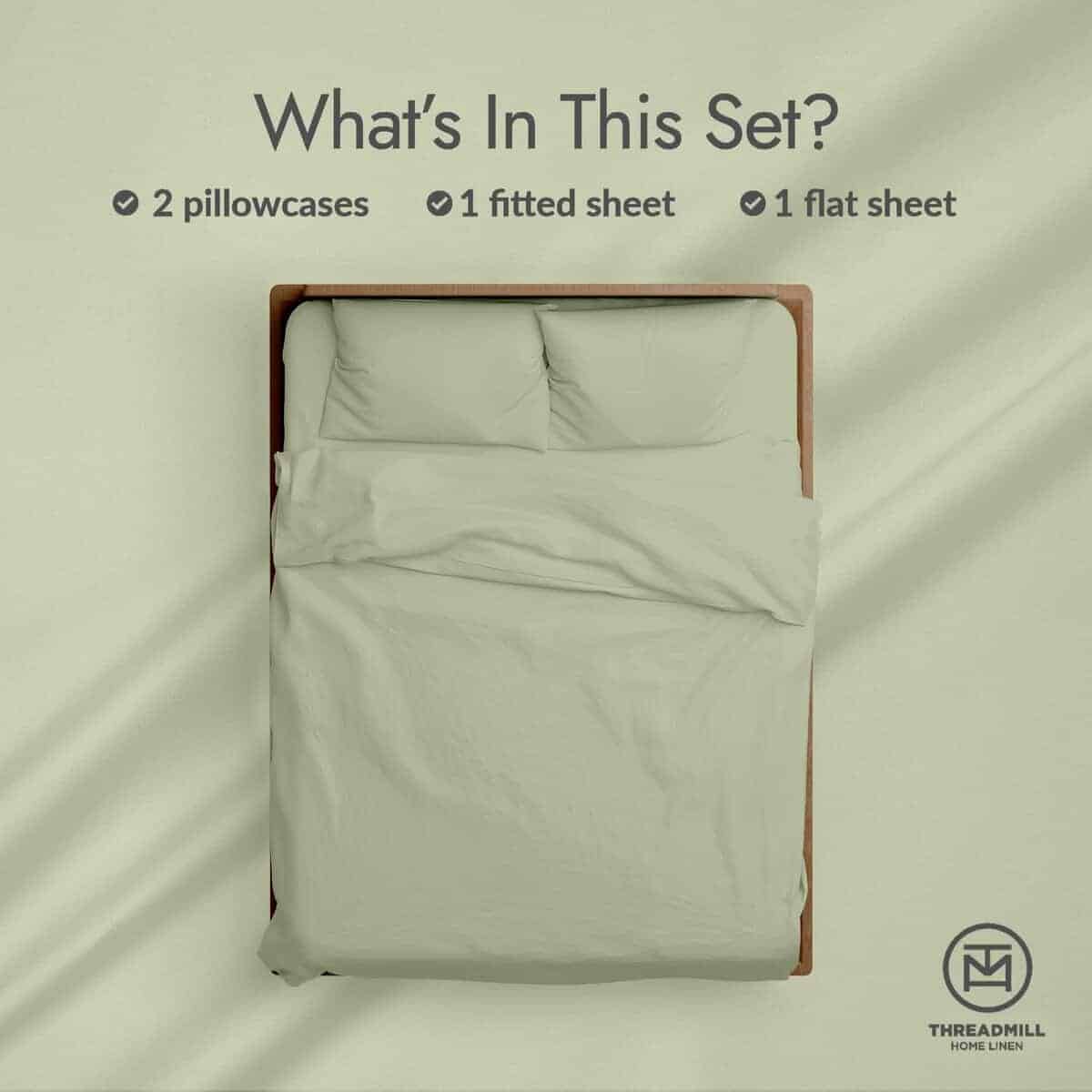Juego de sábanas 100% algodón orgánico -Verde Salvia