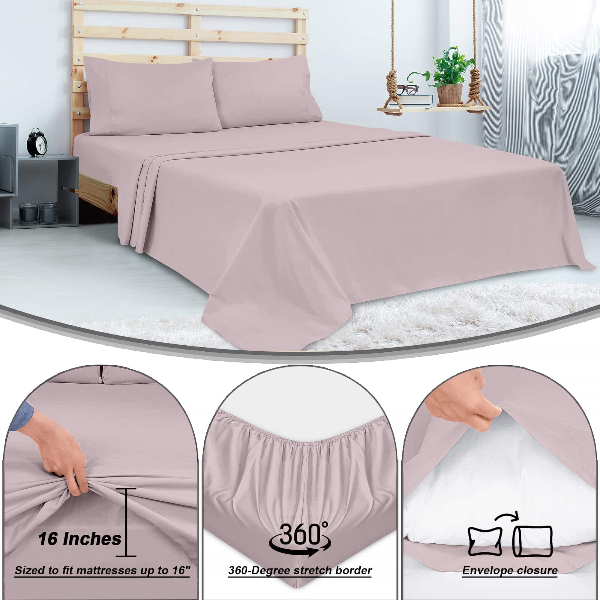 2. JUEGO DE SÁBANAS DE 300 HILOS DE 4 PIEZAS: Este Juego de Sábanas de 300 Hilos de Algodón 100% para Cama King incluye: 1 Sábana Plana de 105X102 Pulgadas, 1 Sábana Ajustable de 78X80 Pulgadas Con 16 Pulgadas de Caída y 2 Fundas de Almohada de 20X40 Pulgadas con Dobladillo de 4 Pulgadas y Cierre de sobre.