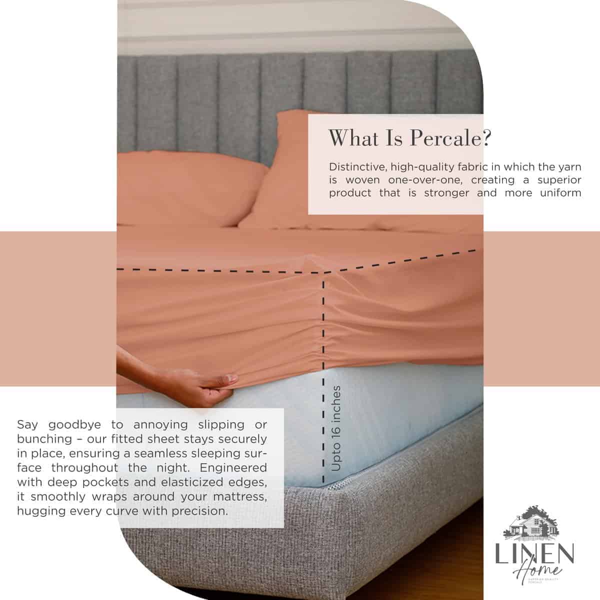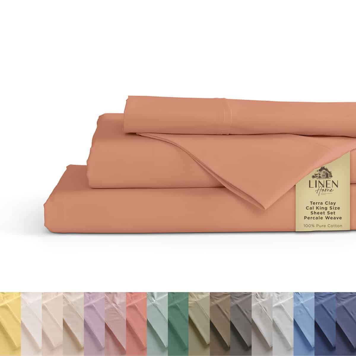 Juego de sábanas 100% algodón percal. El juego incluye 1 sábana plana (108″X106″) + 1 sábana ajustable (72″X84″+15″) + 2 fundas de almohada (20″X40″). La sábana ajustable tiene bolsillo profundo con elástico en todo el contorno para adaptarse a colchones de hasta 16″. La sábana plana y las fundas de almohada tienen costura z para darte una sensación premium y exclusiva. Lavar a máquina en ciclo suave con agua caliente y secar en secadora a baja temperatura. Juego de sábanas de calidad Linen Home. En Linen Home realizamos varias pruebas como sin formación de bolitas, baja contracción, durabilidad superior al desgarro, precisión del recuento de hilos y alta solidez del color. Todas las piezas son inspeccionadas individualmente por nuestro equipo de control de calidad. Este juego de sábanas está hecho para que tengas un sueño acogedor y extra cómodo. Hecho en fábrica de Made in Green para asegurar que el producto se fabrique en un molino aprobado donde las sábanas se hagan libres de mezclas dañinas. La calidad es superior y duradera. Satisfacción garantizada – El enfoque principal de Linen Home es la satisfacción de los clientes, nos enorgullecemos de no causar problemas a los clientes con una política de devolución sin preguntas de 30 días. Nos aseguraremos de que dentro de 24 horas nuestros clientes obtengan una solución e información que necesitan para su pedido. Ideal para regalar durante todo el año – primavera, verano. Incluso para una habitación nueva, habitación infantil, habitación infantil, habitación de invitados, habitación de residencia universitaria.