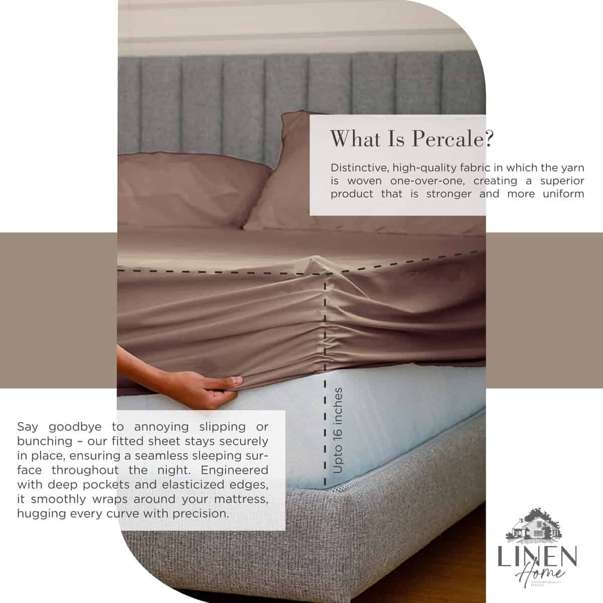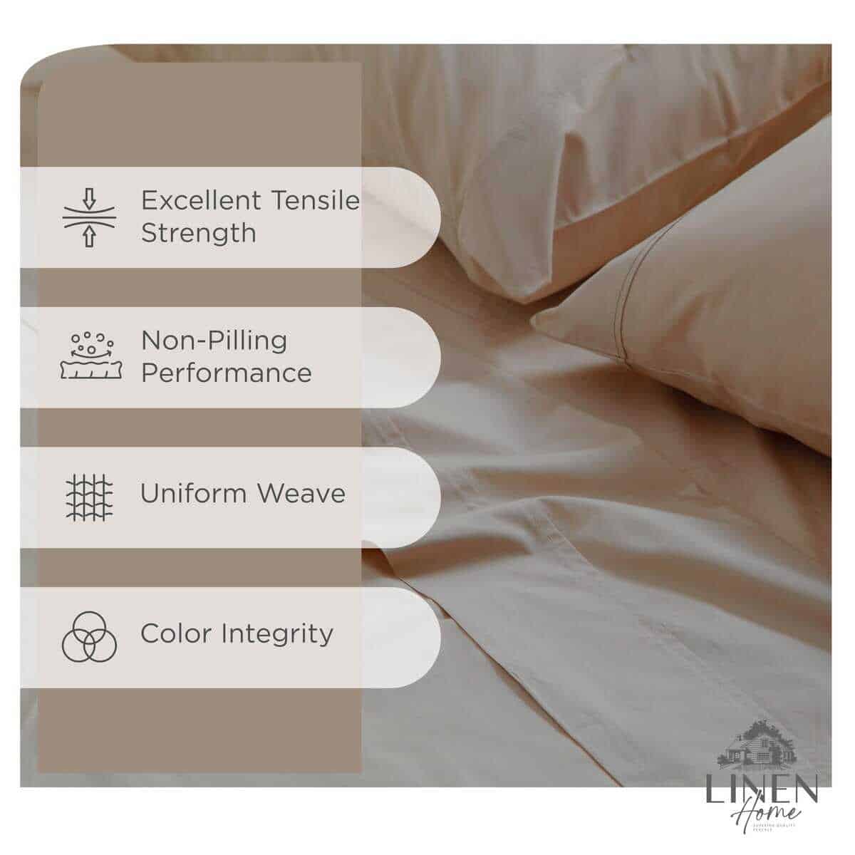 3. CALIDAD LINEN HOME En Linen Home realizamos numerosas pruebas como no formación de pelusa, baja contracción, durabilidad superior al desgarro, precisión en el recuento de hilos y alta solidez del color. Todas las piezas son inspeccionadas individualmente por nuestro equipo de control de calidad. Este juego de sábanas está hecho para que tengas un sueño acogedor y de extra confort.