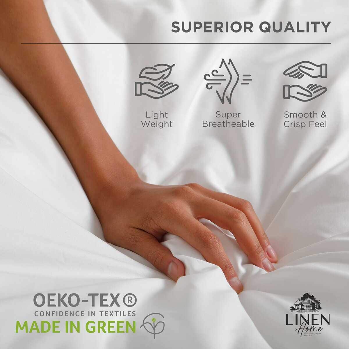 El juego de sábanas 100% algodón de Linen Home pasa por varias pruebas como sin formación de bolitas, baja contracción, durabilidad superior a las roturas, exactitud del recuento de hilos y alta solidez del color. Todas las piezas son inspeccionadas individualmente por nuestro equipo de control de calidad. Este juego de sábanas está hecho para que tengas un sueño acogedor y extra cómodo. Este juego de telas frescas y crujientes se fabrica en una fábrica Made in Green para asegurar que el producto se fabrique en un molino aprobado donde las sábanas están libres de mezclas dañinas. La calidad es superior y duradera. La satisfacción garantizada es el enfoque principal de Linen Home, nos enorgullecemos de no ocasionar molestias a los clientes con nuestra política de devolución de 30 días sin preguntas. Nos aseguraremos de que dentro de 24 horas nuestros clientes obtengan una solución y la información que necesitan para su pedido. Ideal para regalar durante todas las estaciones – primavera, verano. Incluso para habitaciones nuevas, habitaciones infantiles, habitaciones para niños, habitaciones de invitados, dormitorios universitarios.