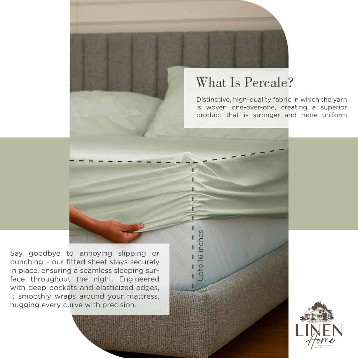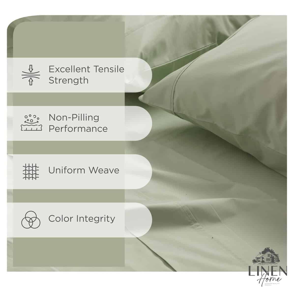Juego de Sábanas 100% Algodón Percale Linen -Verde Salvia