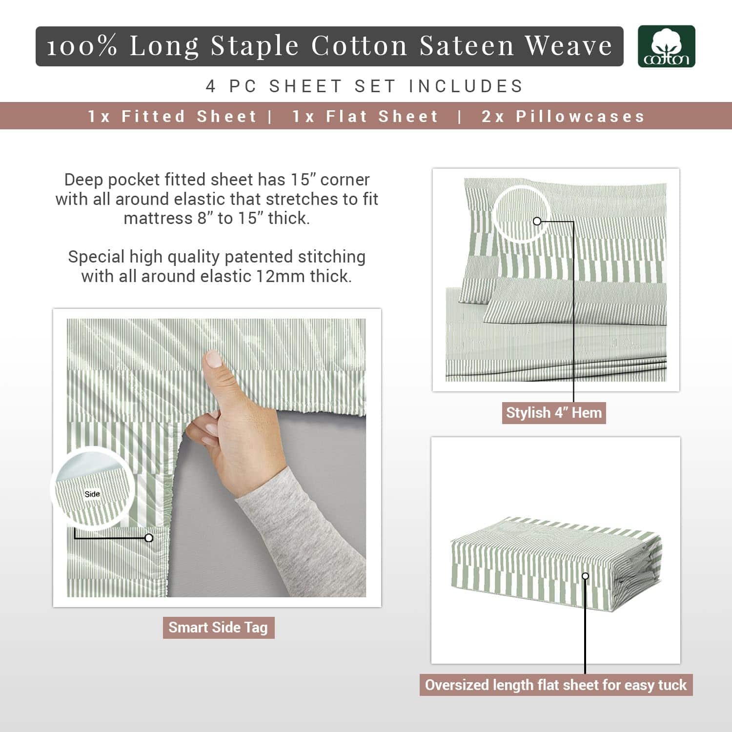 Las sábanas de algodón full-size de Pizuna son suaves y frescas gracias a su tejido de algodón de fibra larga y compactado. Evitan la sudoración nocturna, absorben la humedad y regulan la temperatura corporal para dormir fresco. El juego incluye una sábana plana, una sábana ajustable con elasticidad de alta calidad para colchones de 8 a 15 pulgadas de grosor y 2 fundas de almohada con detalles elegantes. El tejido de algodón mercerizado y peinado de 400 hilos garantiza frescura y suavidad duradera. Certificado OEKO-TEX sin químicos dañinos, amigable con el planeta y apto para pieles sensibles. Empaquetado de manera ecológica con colores resistentes al lavado. Perfecto para regalar a nivel global con opciones de tamaños y colores variados. Si no estás satisfecho, puedes devolver el producto dentro de los primeros 30 días.