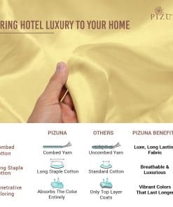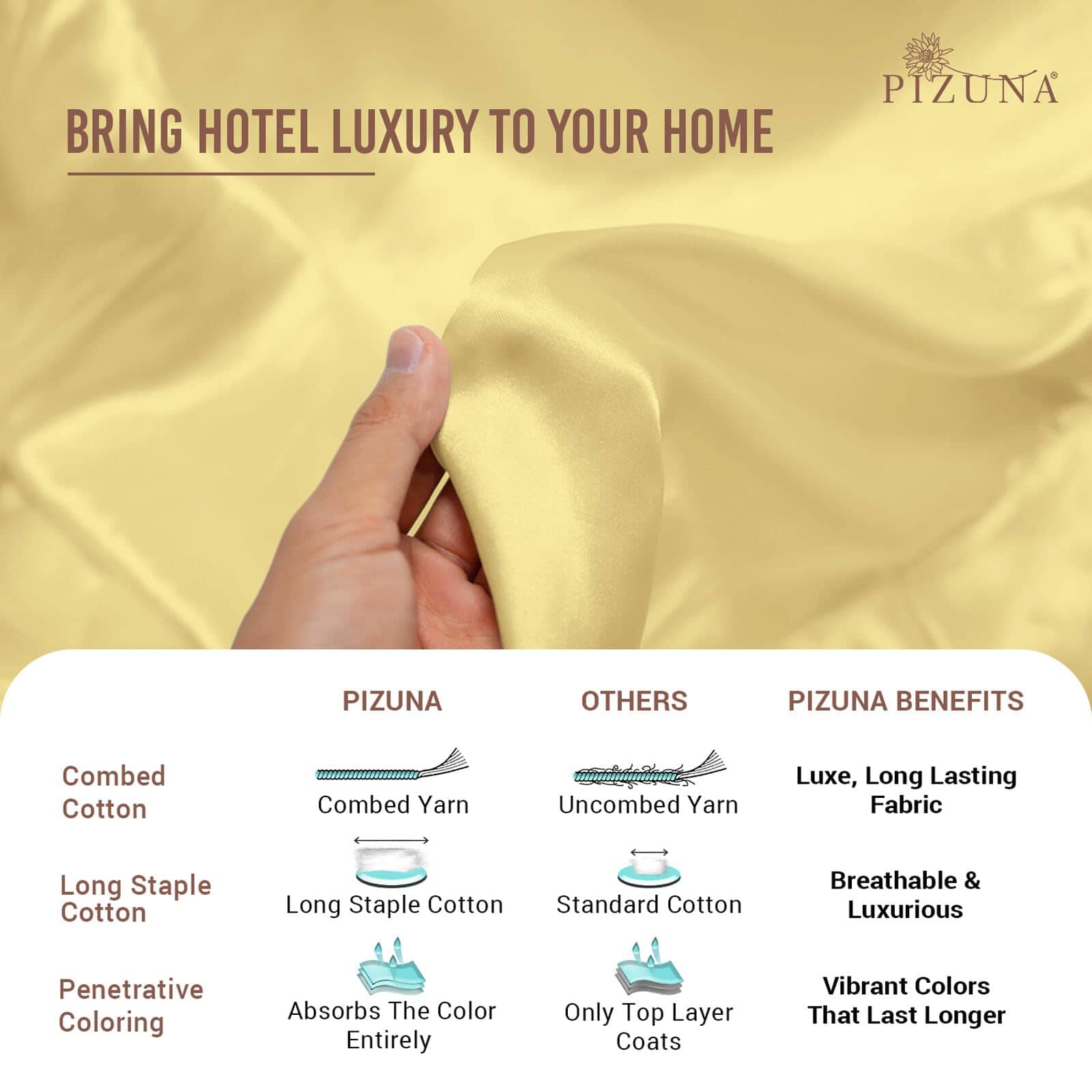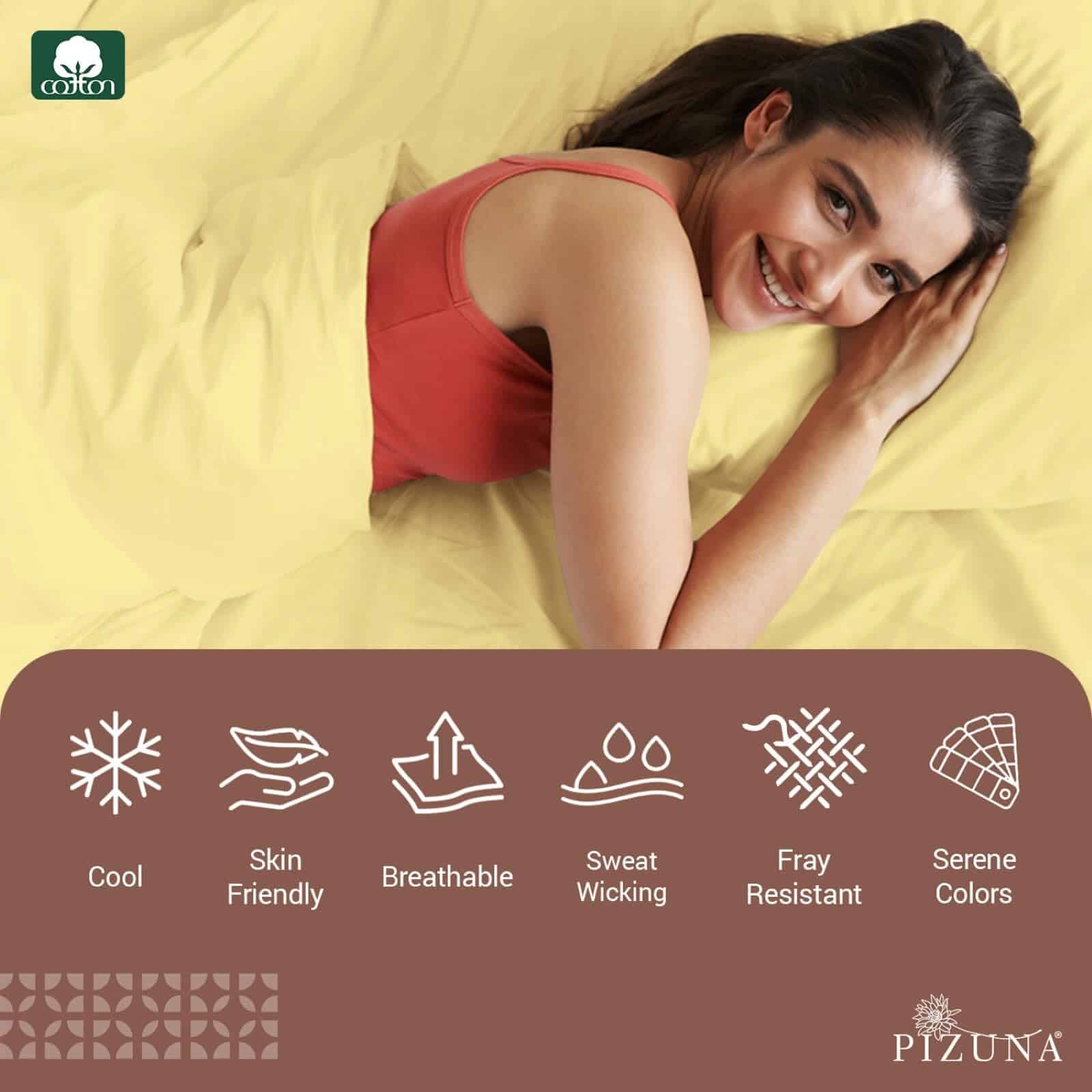 1. Amigable con la piel, fresco y suave: elaborado con 100% algodón peinado de alta calidad con tejido de satén de 400 hilos, este juego de sábanas king size con textura ligera está hecho con hilo especialmente compactado. Un procesamiento artificial mínimo hace que este juego de sábanas king sea suave para todo tipo de piel, previene el sudor nocturno, absorbe la humedad y regula la temperatura corporal para dormir fresco mientras mantiene un elegante aspecto de hotel. 2. Costura patentada para un ajuste perfecto: El juego de sábanas king incluye: 1 sábana plana King Size (108 x 102) – Absorbe rápidamente el sudor y protege contra manchas, garantizando la frescura del edredón o la colcha. 1 sábana ajustable completamente elástica con bolsillo profundo (78 x 80 + 15) – Viene con una costura patentada única que tiene elástico grueso y de alta calidad para un ajuste firme en colchones de 8 a 15 de grosor. 2 fundas de almohada King (20 x 40) – Con un elegante dobladillo con ribete de 4″ de estilo Pizuna que le da un aspecto elegante y un sueño confortable. 3. 100% algodón peinado mercerizado puro y natural: Con la técnica de hilo fino de Pizuna, este auténtico juego de sábanas king de algodón peinado de 400 hilos presenta un tejido de satén de una sola dentada (4 arriba, 1 abajo). El uso de algodón peinado mercerizado hace que este juego de sábanas king tamaño sea suave y resistente. La ropa de cama de algodón puro y natural se arruga, pero es distintivamente más fresca y transpirable. Además, se suaviza y las arrugas disminuyen con cada lavado. 4. Estándar de calidad de Pizuna: Los productos de Pizuna son individualmente confeccionados, medidos y chequeados (pieza por pieza) por nuestro equipo de control de calidad. La tela de este juego de sábanas king es certificada OEKO-TEX & AZO-Free (2024), libre de sustancias sintéticas y respetuosa con el planeta, lo que la hace reconfortante incluso para la piel más delicada. 5. Indulge Responsablemente: Este juego de sábanas está en conformidad con BSCI, socialmente responsable y respetuoso con el medio ambiente. El uso de materiales reciclados para el embalaje puede añadir un olor desagradable que desaparece después del primer lavado en agua caliente. Hecho con tintes resistentes a la decoloración, es apto para lavar a máquina en un ciclo suave y secar en secadora a baja temperatura. El uso de lejía puede afectar los colores. 6. Diseñado para un mejor descanso: Nuestros expertos en sueño internos estudian el comportamiento y los patrones de sueño del usuario, lo que resulta en una mejora del producto y un embalaje compacto. Disponible a nivel mundial en múltiples colores y tamaños, hacen de este juego de sábanas king el regalo perfecto para sus seres queridos. 7. Pizuna Cuida: Miles de familias felices y medios de comunicación han elogiado nuestro lujoso juego de sábanas de algodón. Sin embargo, si no está satisfecho con el producto, puede devolverlo dentro de los 30 días según la política, más allá de eso, nuestro equipo de atención al cliente estará allí para ayudarle también.