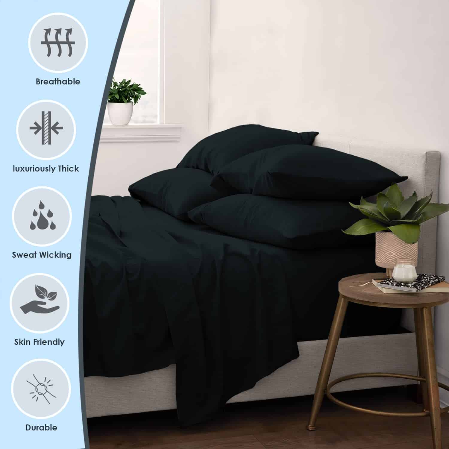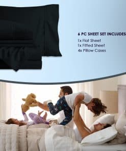 2. Costura patentada para un gran ajuste: el juego de sábanas King de bolsillo profundo incluye: 1 sábana plana tamaño King (108 x 102) – Absorbe rápidamente el sudor y protege de las manchas, garantizando la frescura del edredón. 1 sábana ajustable completamente elástica con bolsillo profundo (78 x 80 + 15) – Viene con una costura patentada única que tiene un elástico grueso y de alta calidad para un ajuste firme en colchones de 8 a 15 pulgadas de grosor. 4 fundas de almohada tamaño King (20 x 40) – Con un dobladillo estilo Pizuna de 4″ que aporta un aspecto elegante y un sueño confortable.