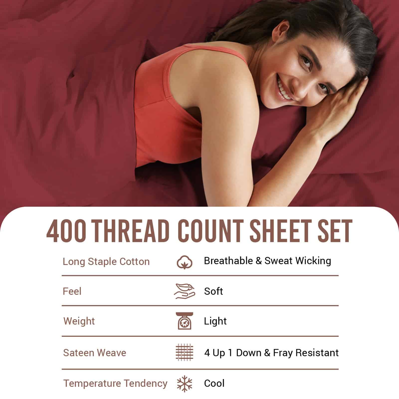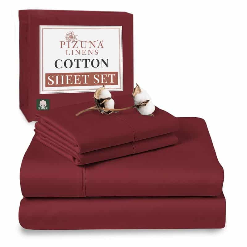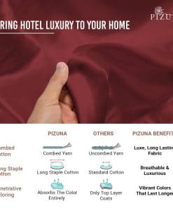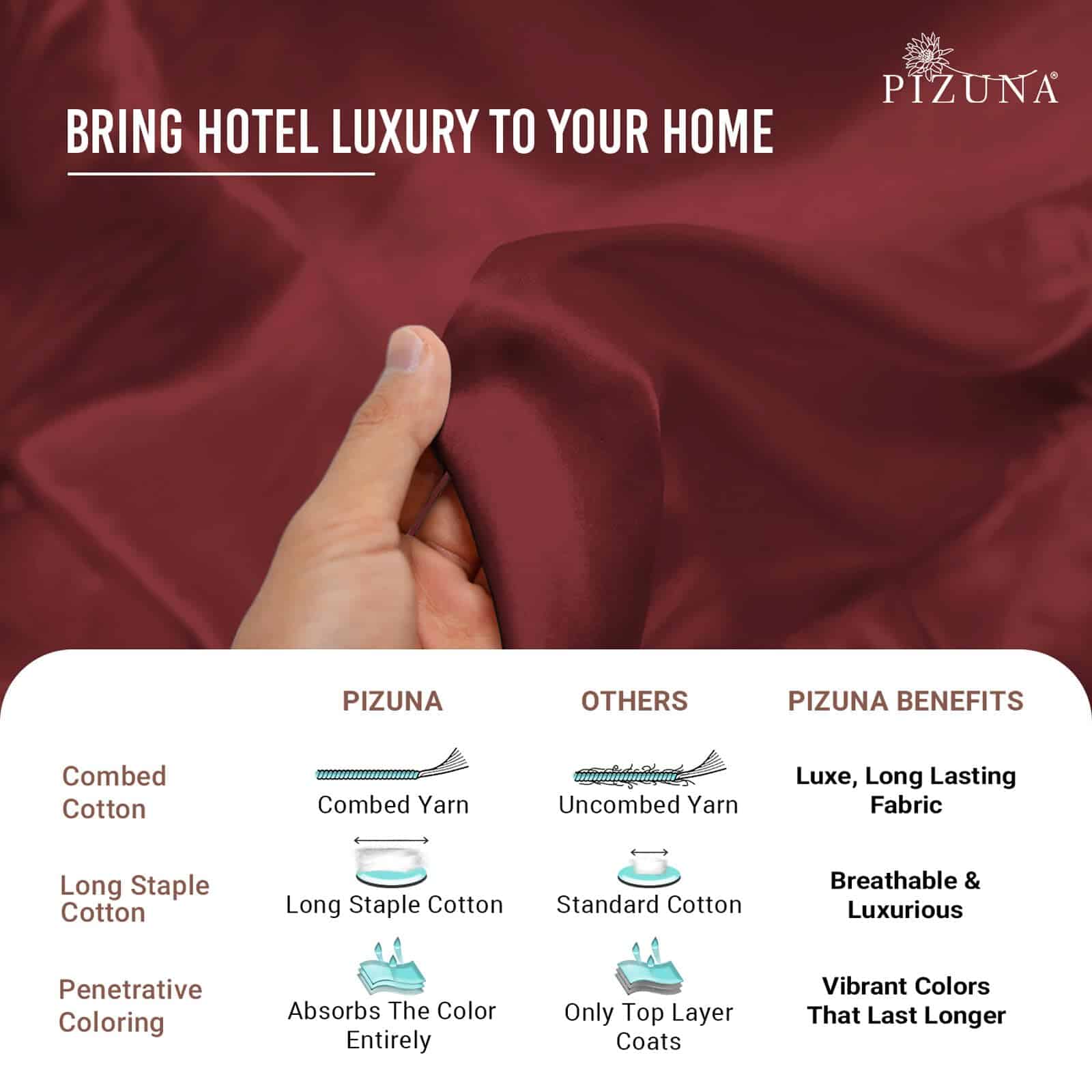 Sábana 100% algodón Pizuna Pure tamaño King Rio Red, lujosas sábanas de satén de algodón de 400 hilos con 15″ de profundidad y 2 fundas de almohada extra. Respetuoso con la piel, fresco y suave. El juego de sábanas King de 6 piezas incluye: 1 Sábana plana King Size, 1 Sábana ajustable completamente elástica con bolsillo profundo, y 4 Fundas de almohada King. 100% puro y natural algodón peinado mercerizado. Estándar de calidad Pizuna. Indulge Responsablemente. Diseñado para un mejor sueño. Pizuna se preocupa.