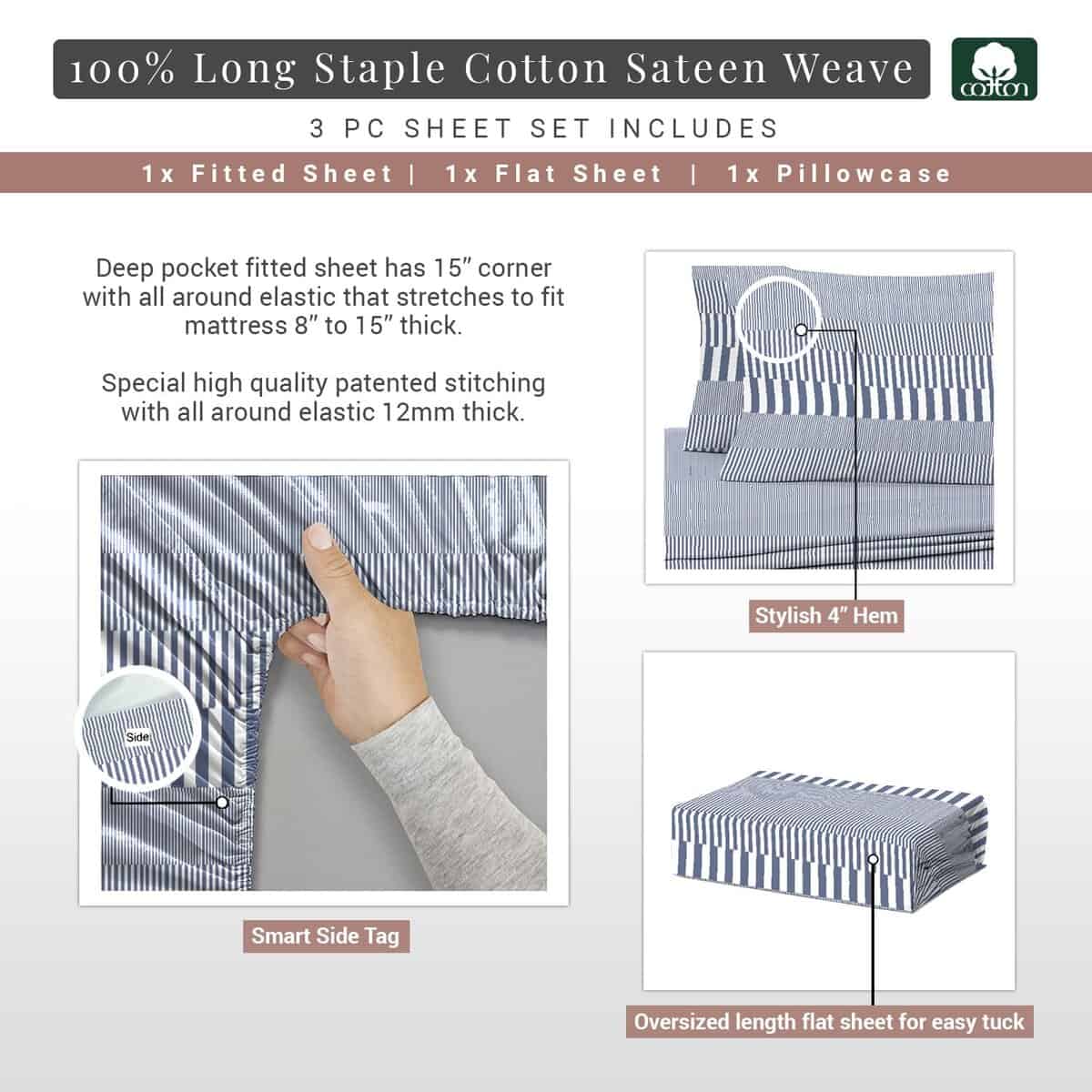 Juego de Sábanas 100% Algodón Puro en Tamaño Twin XL de